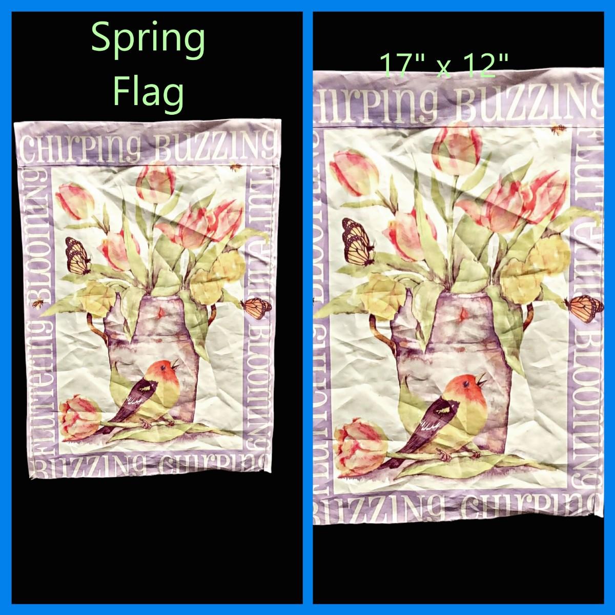 - White/Lavender/Orange/Yellow Spring Birds, Butterflies & Fowers Flag 17" x 12"
