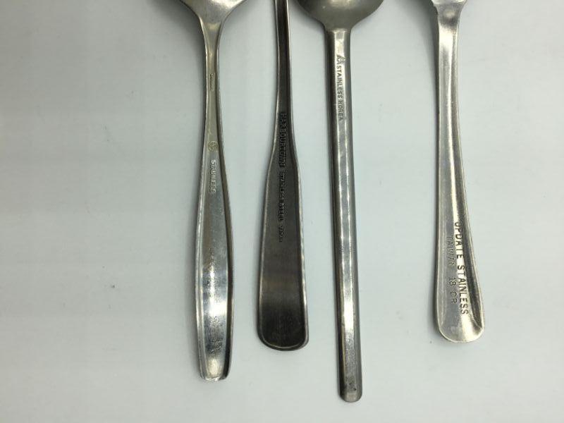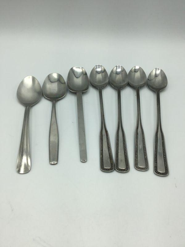 7 spoons. Different patterns. 4 are long handle tea spoons with the same.