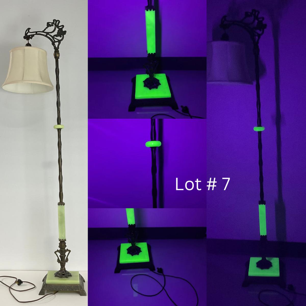 One stunningly beautiful vintage heavy Uranium glass floor lamp with a beautiful glow. This floor lamp is a rarity and a gem for any Uranium glass collectors collection. Please see photos for details and condition. ::: Shipping is NOT available on this lot. If you have any questions regarding this lot please contact the auctioneer either via this website, by direct email or by phone. PICK UP TIMES and other important information can be found in the TERMS and DESCRIPTION of the auction. Please take a look for pertinent information. Thanks!