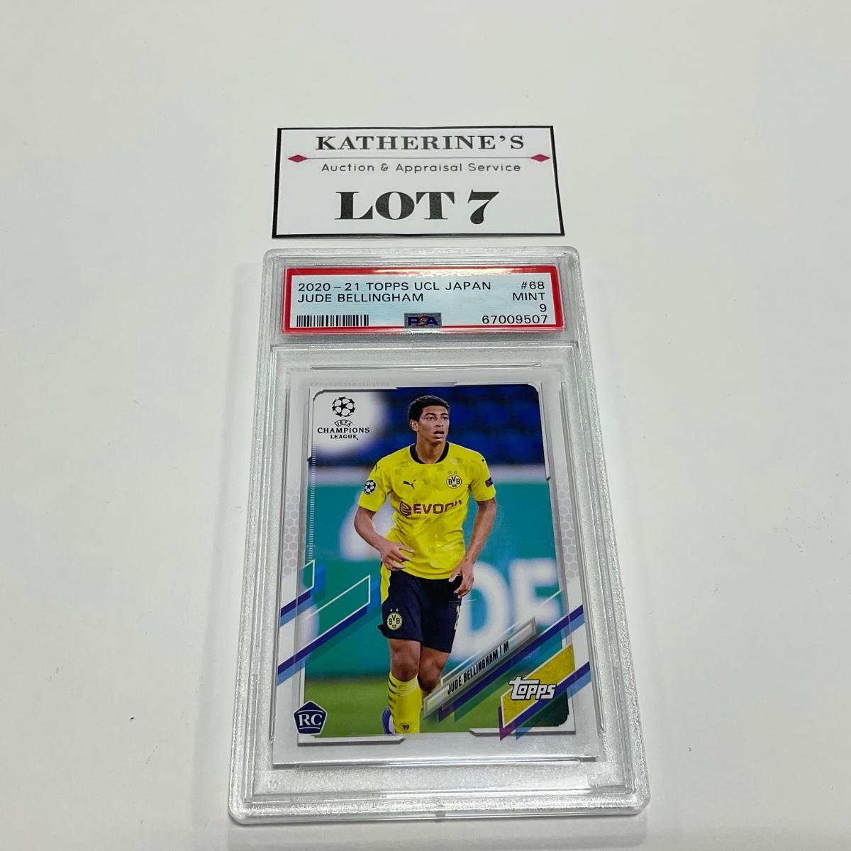 One 2020-21 TOPPS UCL Japan Jude Bellingham card with a mint of 9. Please see photos for details and condition. ::: Shipping is available on this lot. If you require shipping you must let us know at the close of the auction. We will coordinate with you after the item has been won. Shipping fees will include insurance up to or exceeding the value of all items being mailed. If you have any questions regarding this lot please contact the auctioneer either via this website, by direct email or by phone. PICK UP TIMES and other important information can be found in the TERMS and DESCRIPTION of the auction. Please take a look for pertinent information. Thanks!