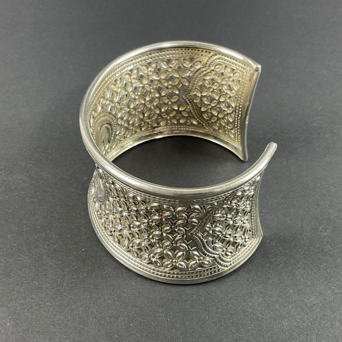 one vintage marked sterling silver elephant cuff bracelet. This piece is 59 grams in weight. Please see photos for details and condition. Any condition statement is given as a courtesy to a client, is an opinion, and should not be treated as a statement of fact. Reference to condition written, oral or within a condition report shall not be regarded as a full account of condition and may not include all defects, alterations, or restorations. Absence of a condition report does not imply a lot is flawless or lacking imperfections or damage. Katherine’s Auction & Appraisal Service shall have no responsibility for any error or omission. Returns shall not be accepted on the basis of condition. ::: Shipping is available on this lot. If you require shipping you must let us know at the close of the auction. We will coordinate with you after the item has been won. Shipping fees will include insurance up to or exceeding the value of all items being mailed. If you have any questions regarding this lot please contact the auctioneer either via this website, by direct email or by phone. PICK UP TIMES and other important information can be found in the TERMS and DESCRIPTION of the auction. Please take a look for pertinent information. Thanks!