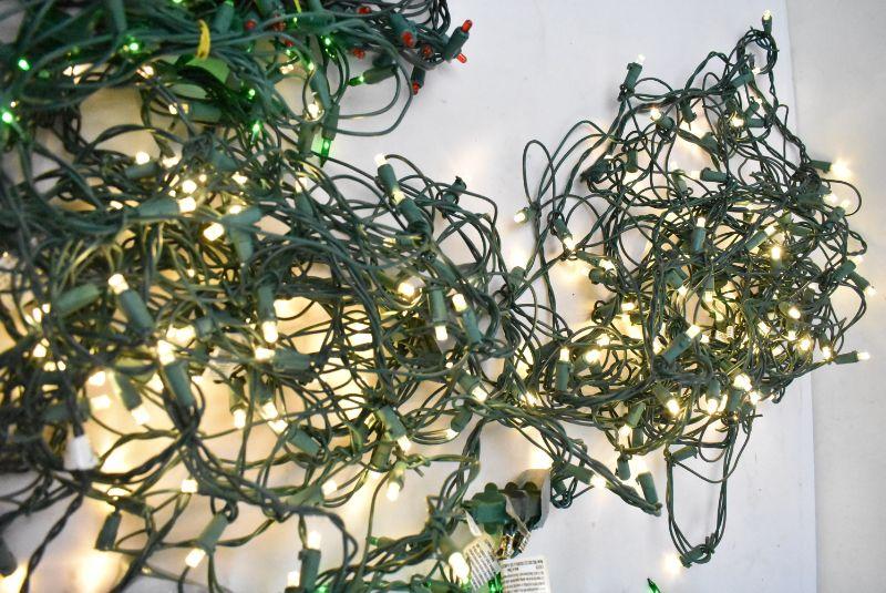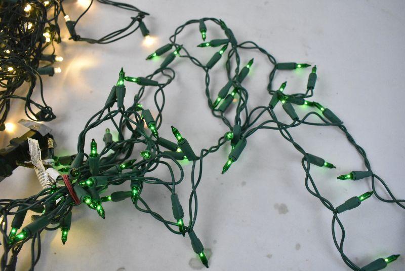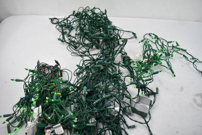 7 Strands of Lights: 4 Green, 2 White, and 1 Red - All Tested, All Work, Camera Doesn't Photograph Well