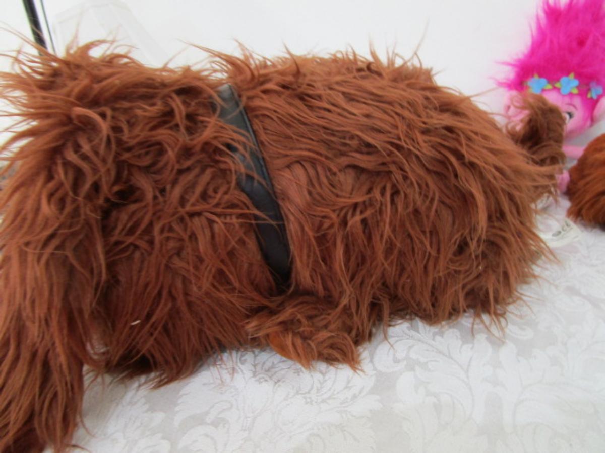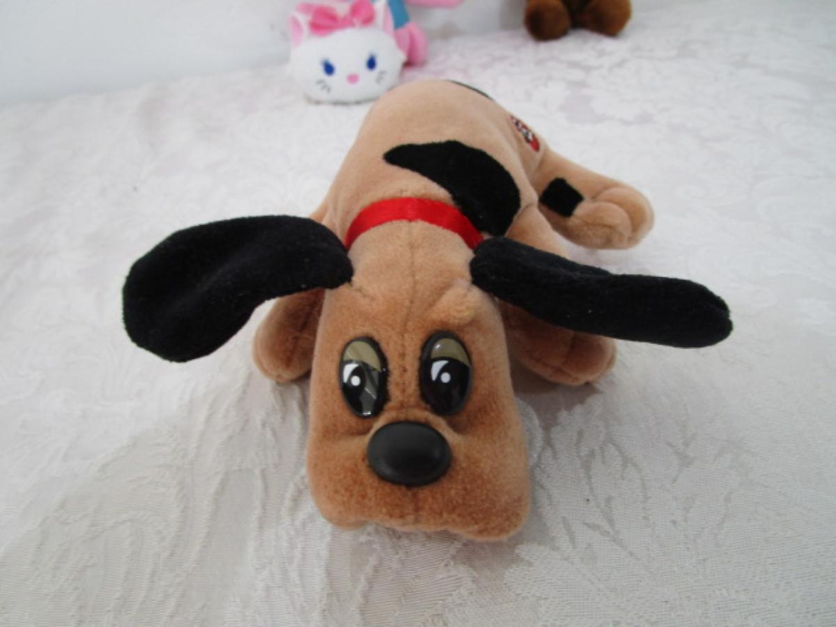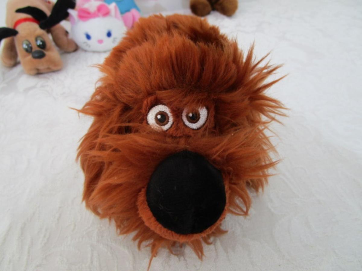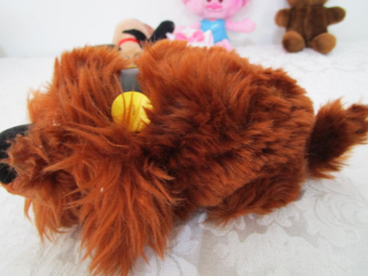 7 stuffed animals one of which is a talking Aristocat kitty, one is a praying lamb