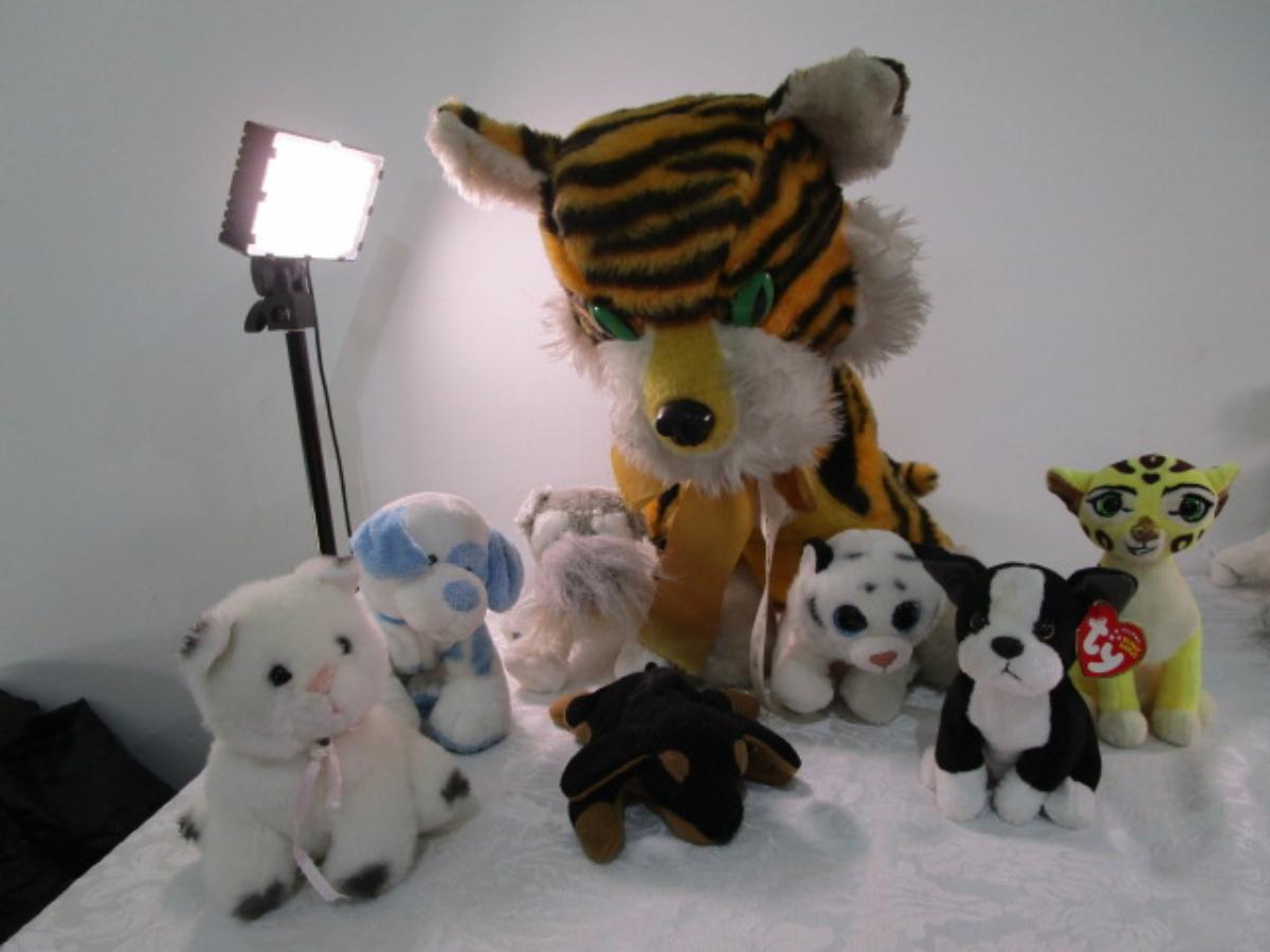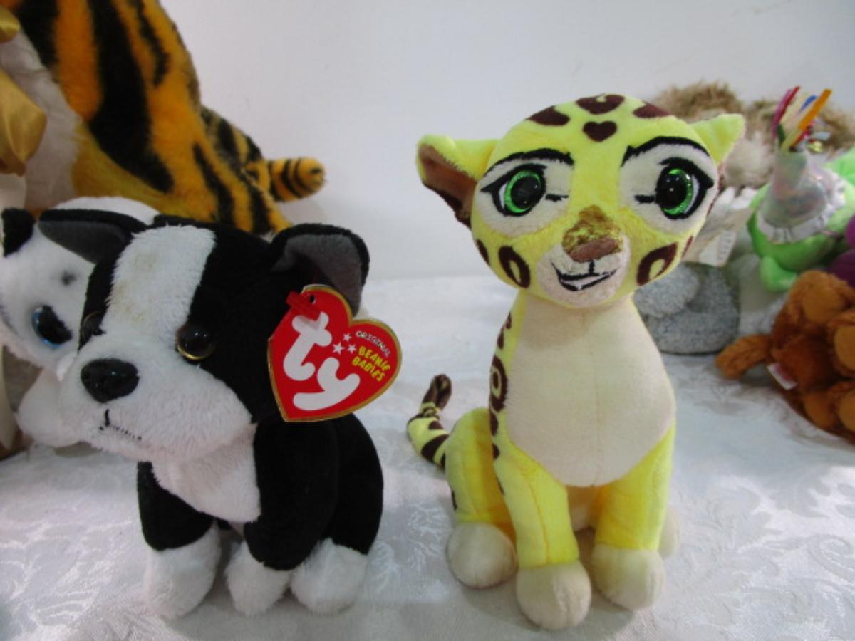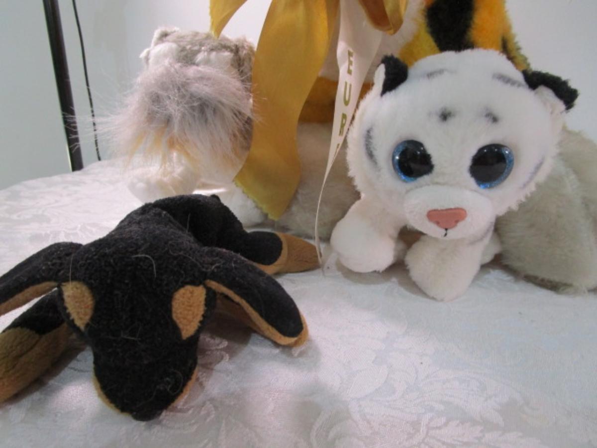 7 stuffed animals, some of which are Ty & large tiger is vintage