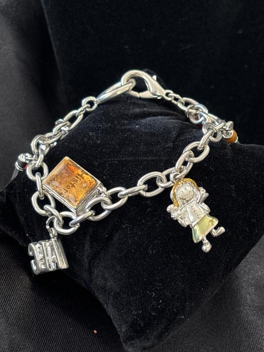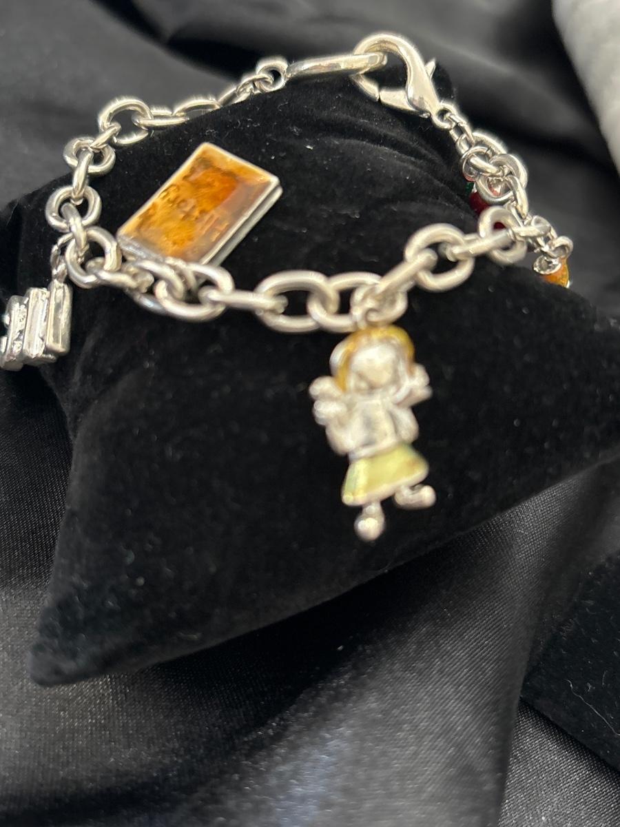 7” TEACHER SCHOOL SILVERTONE CHARM BRACELET APPLES HISTORY BOOK KIDS PENCIL ABC