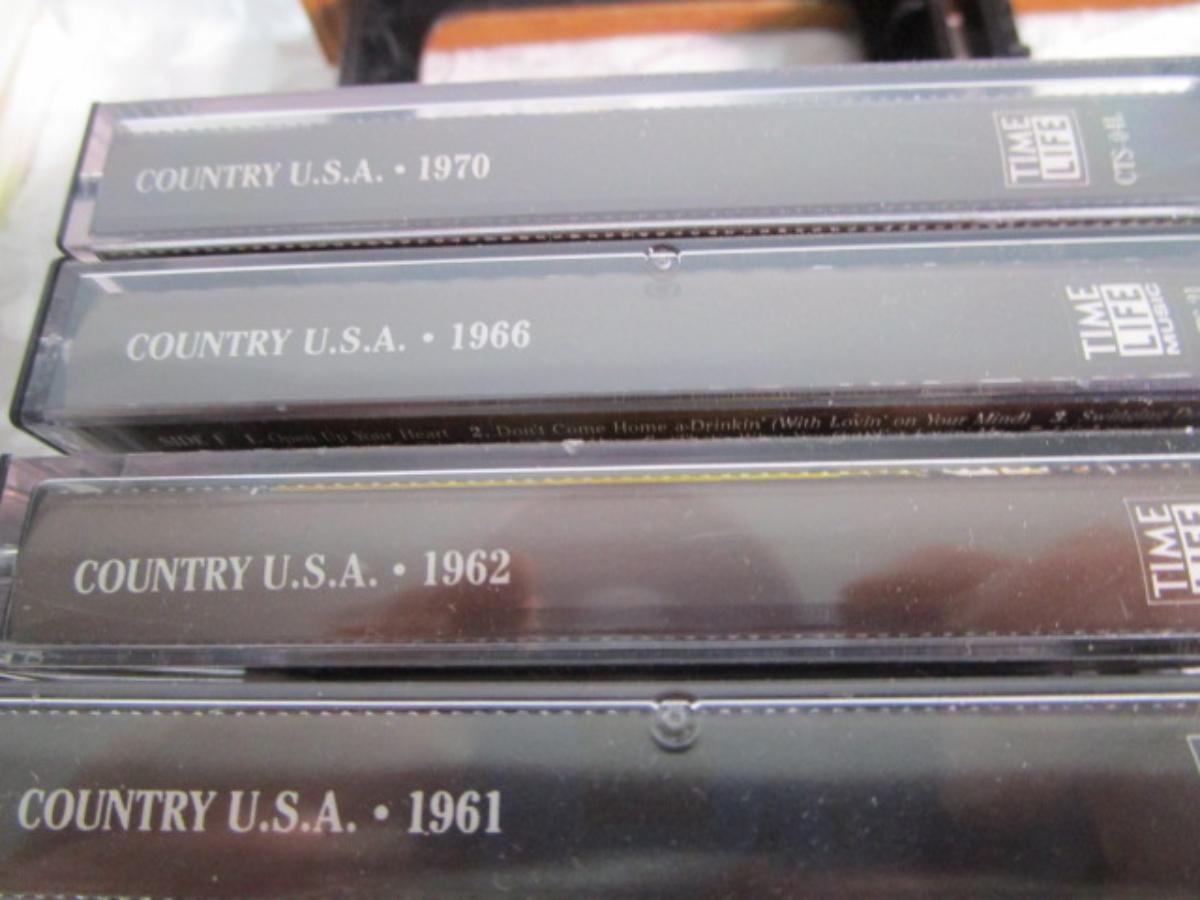 7 Time-life Country USA cassette tapes in a case that holds 42 cassettes
