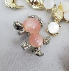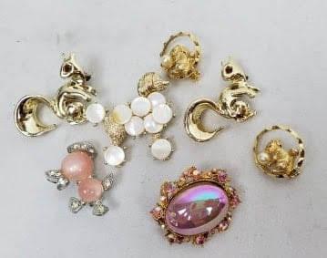 7 Vintage Costume Jewelry Pins, Poodle, Squirrels, Pink