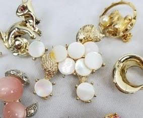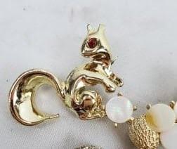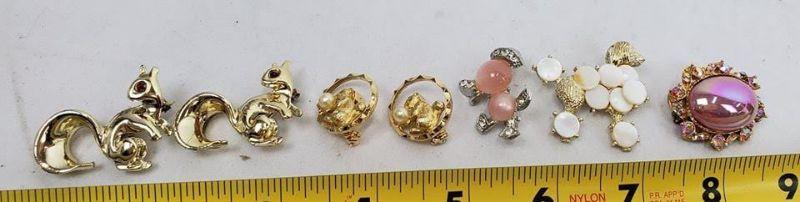 7 Vintage Costume Jewelry Pins, Poodle Pin, 2 Squirrel Pearl Pin, Pink Pin, 2 Squirrel w/Red Eyes Pins