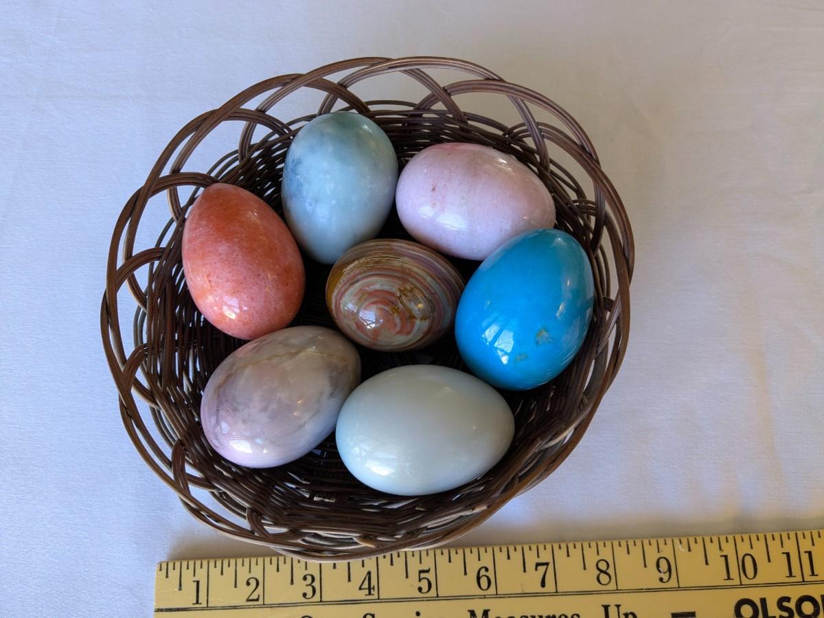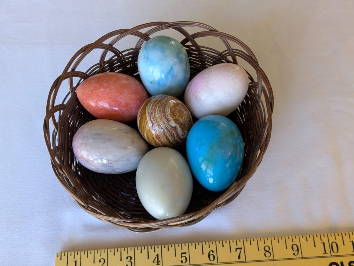 7 Vintage, Italian Alabaster, Stone, Polished Eggs