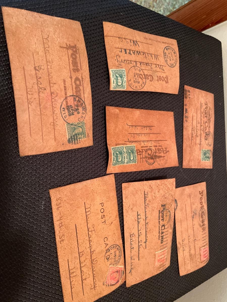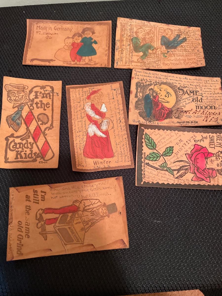 7 vintage leather post cards