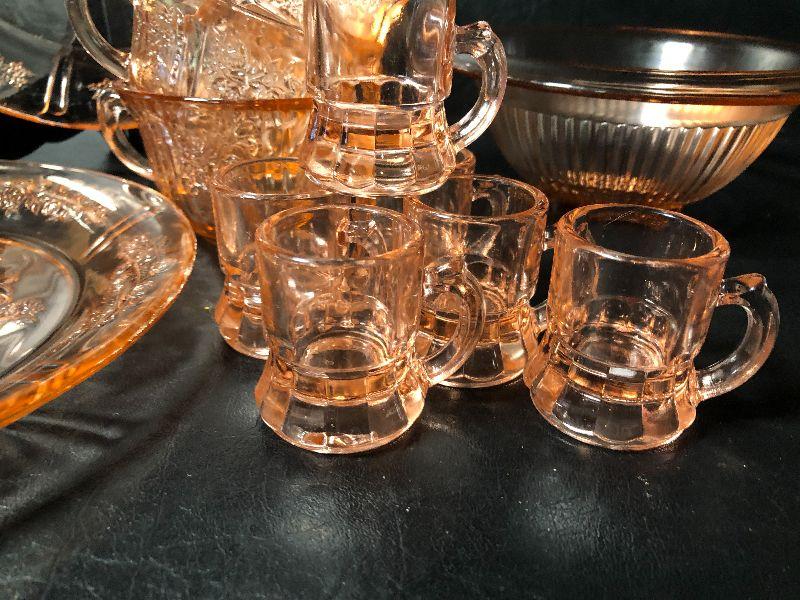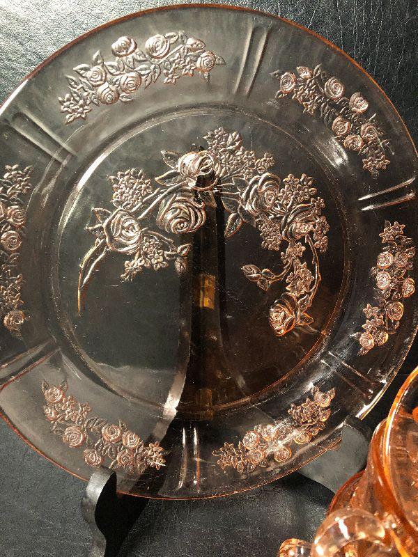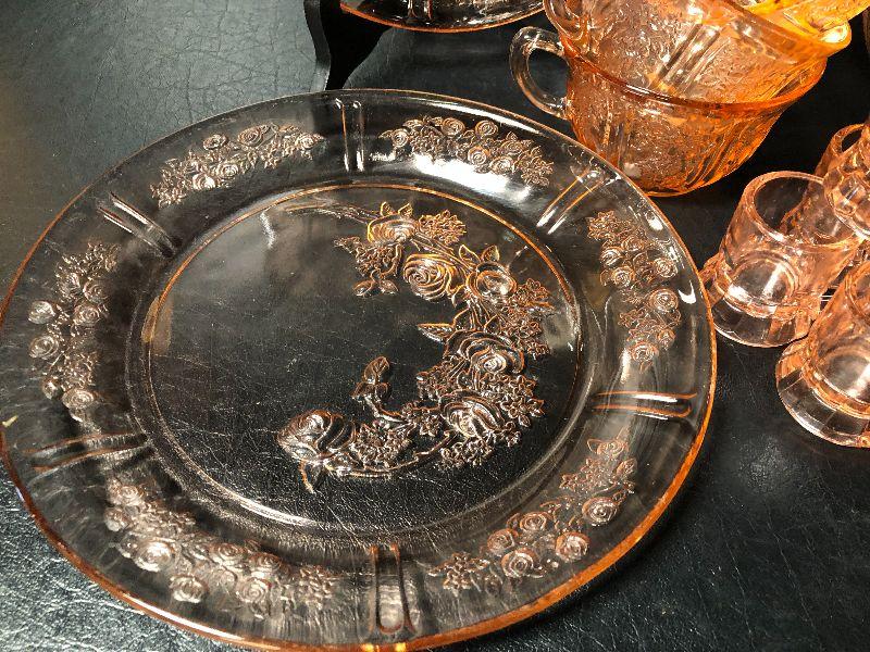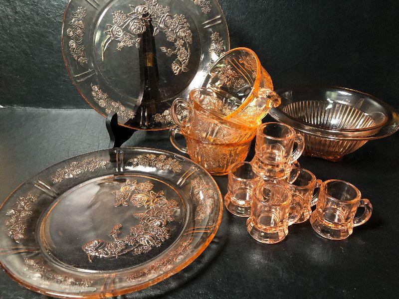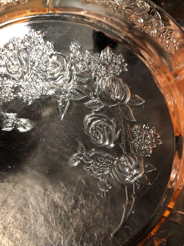 7: Vintage Pink Depression Glass with Floral Etching
