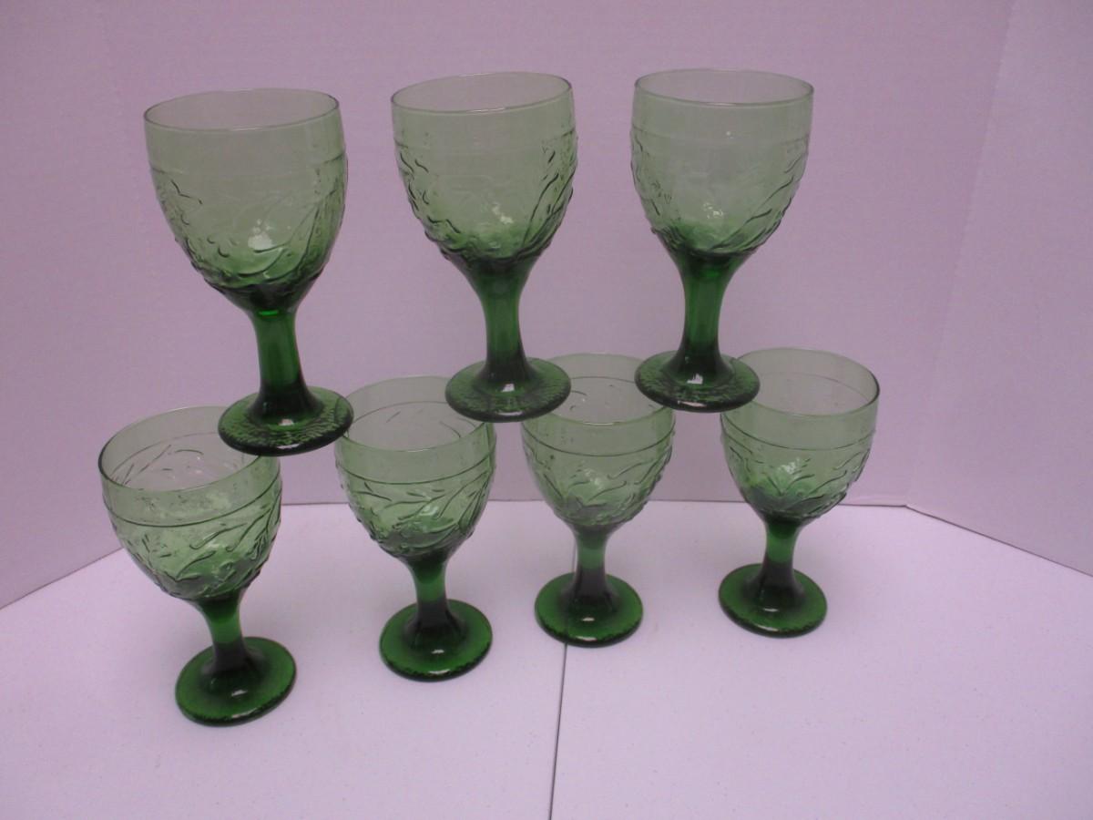 7 - Vintage Sage Green Branches Of Pressed Glass (K)