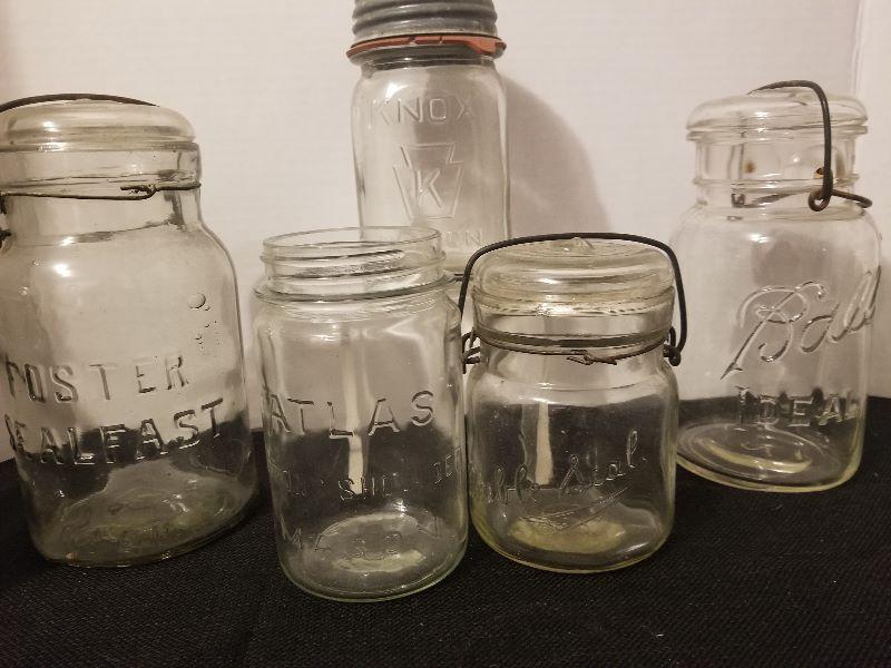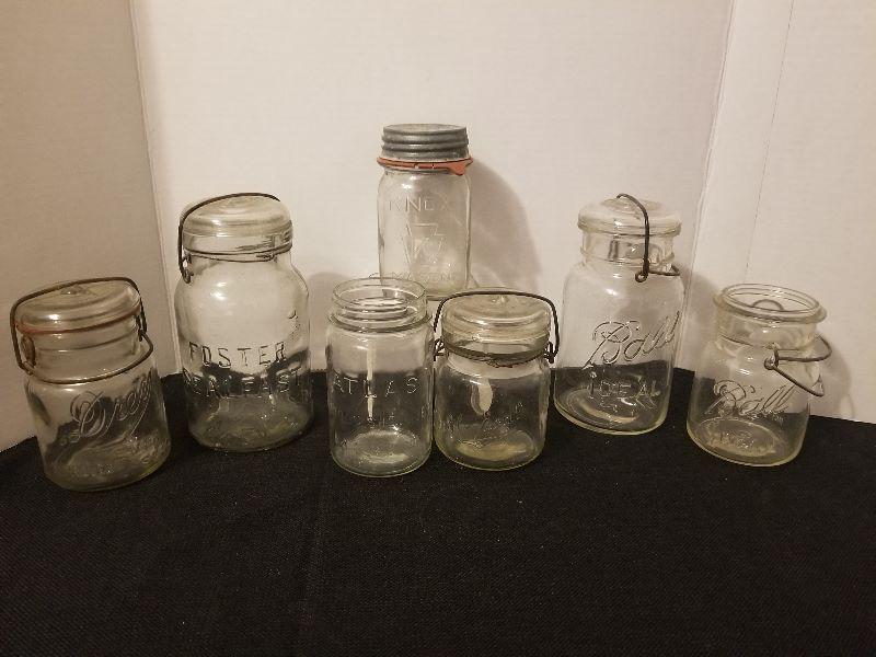 7 Vintage/Antique Mason Jars Ball Knox Foster Atlas - #17-A