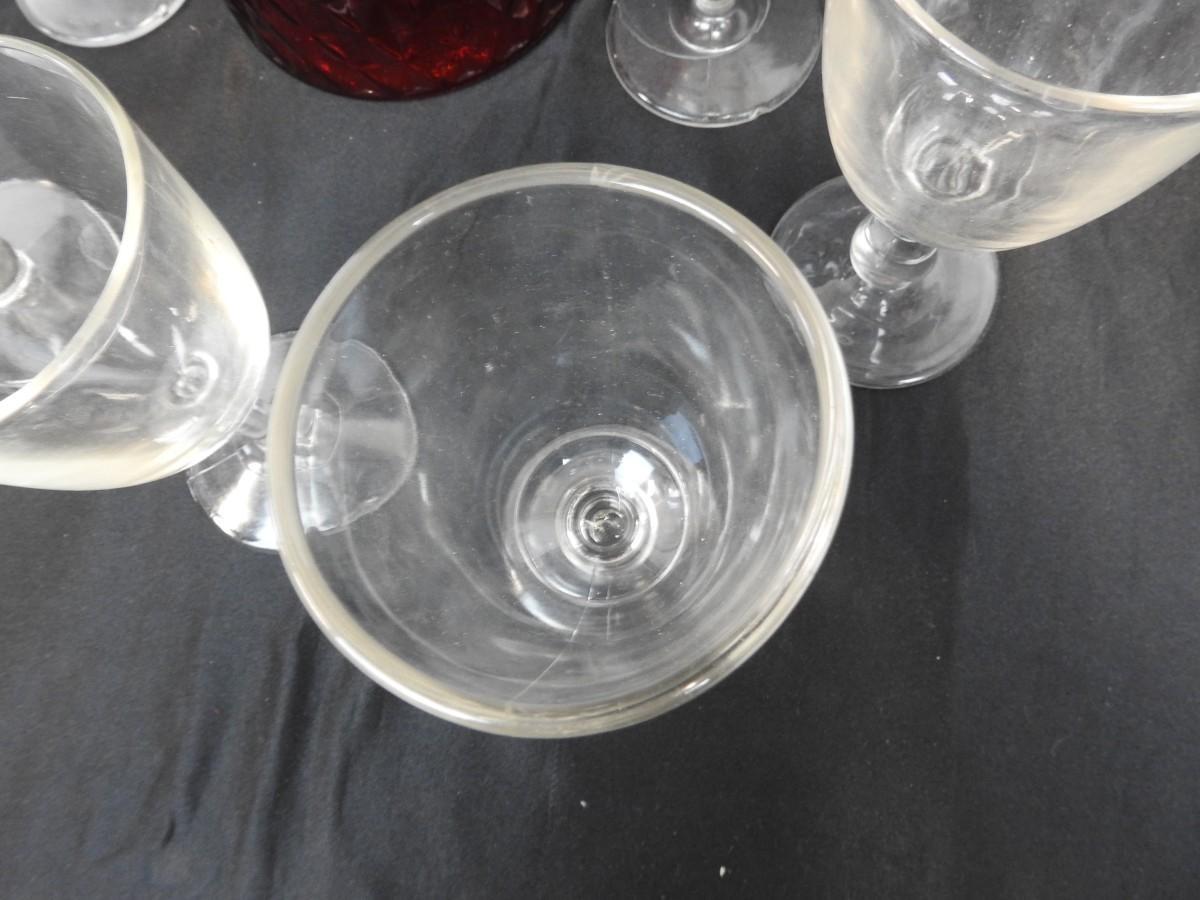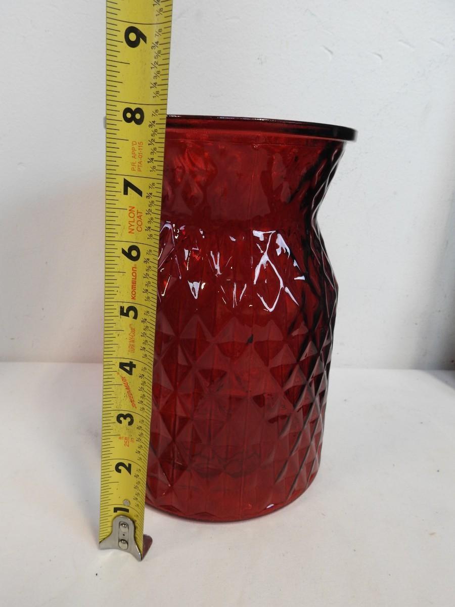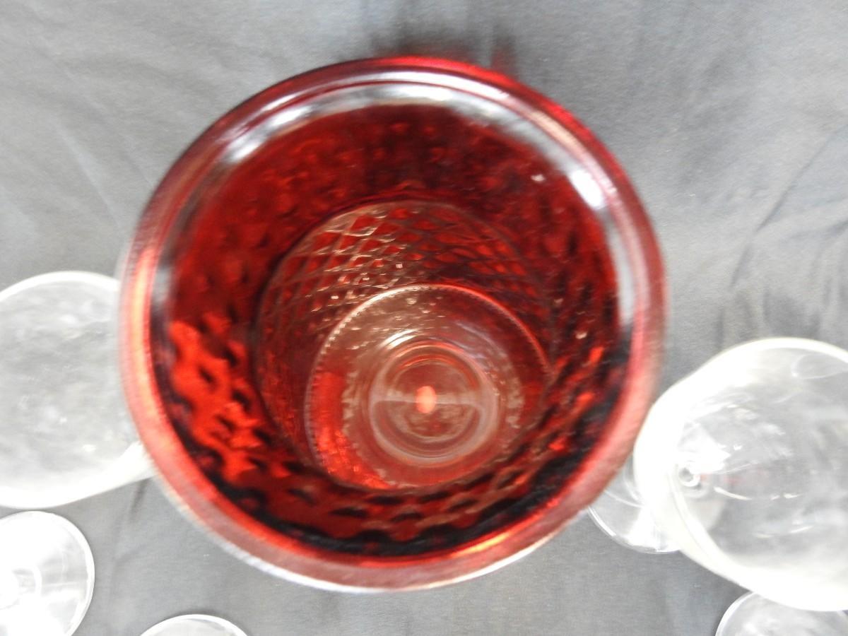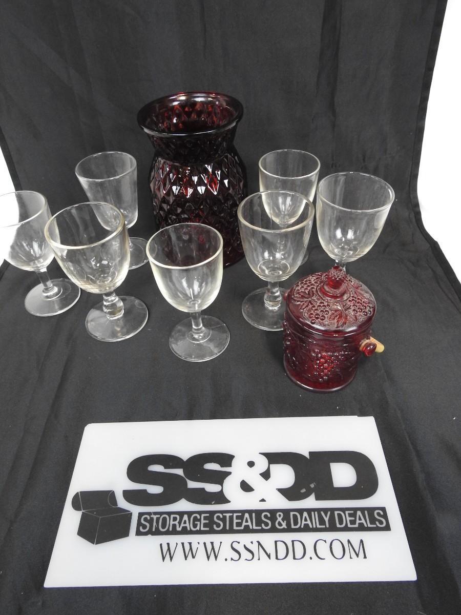 7 Wine Glasses, Red Glass Jar with Handle, Red Flower Vase