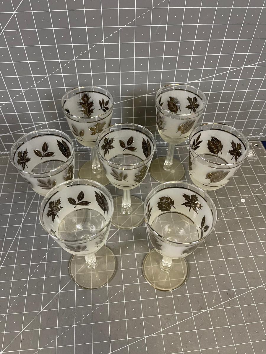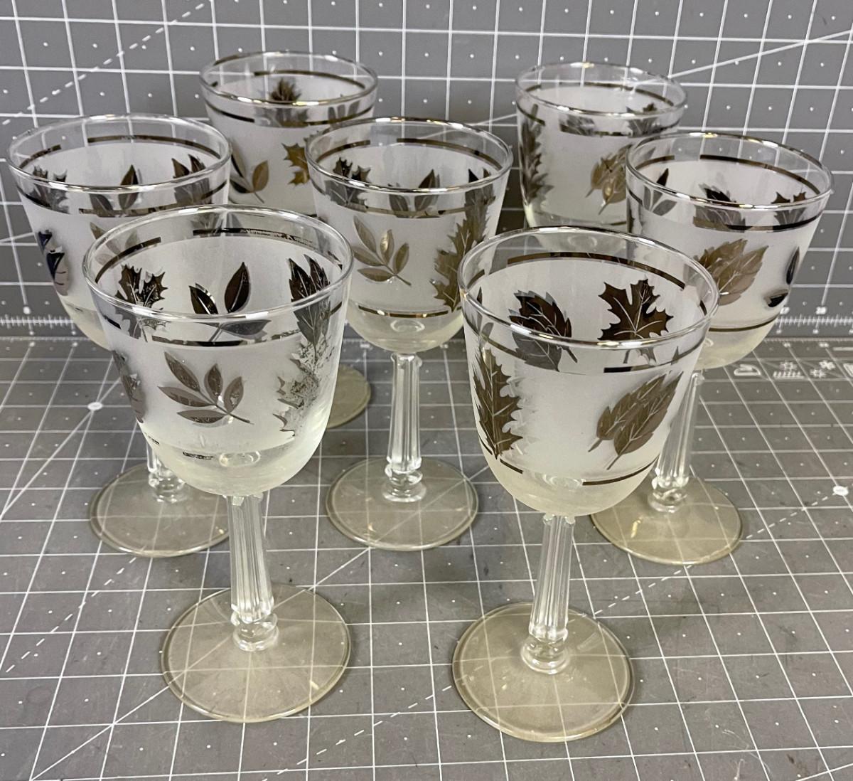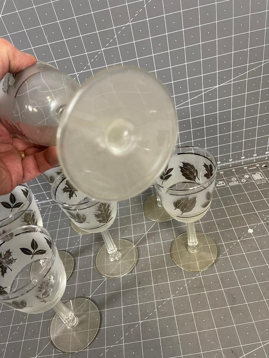 (7) Wine Goblets With Silver Leaves - BEAUTIFUL