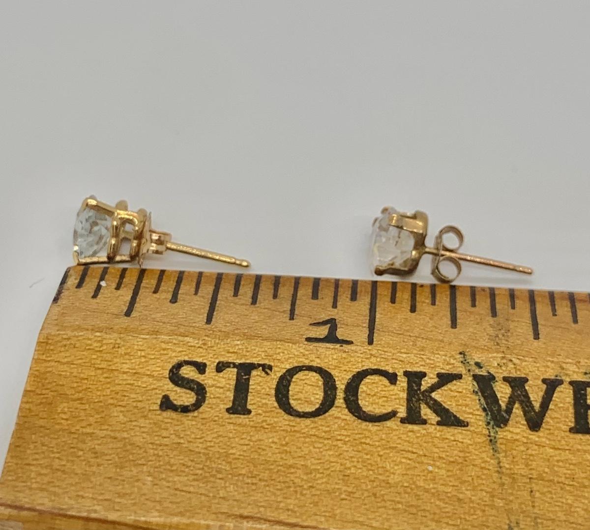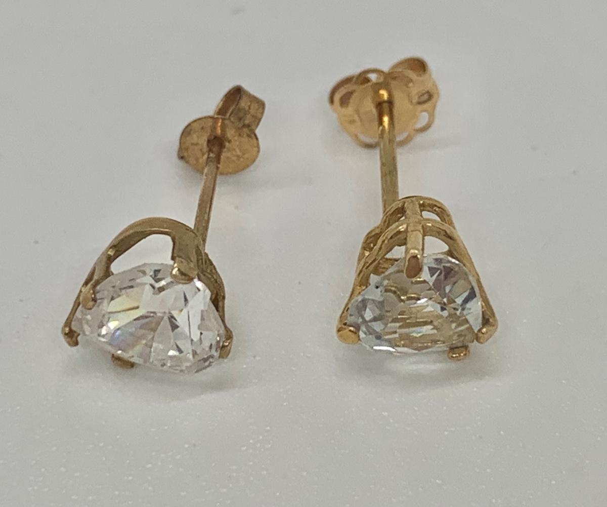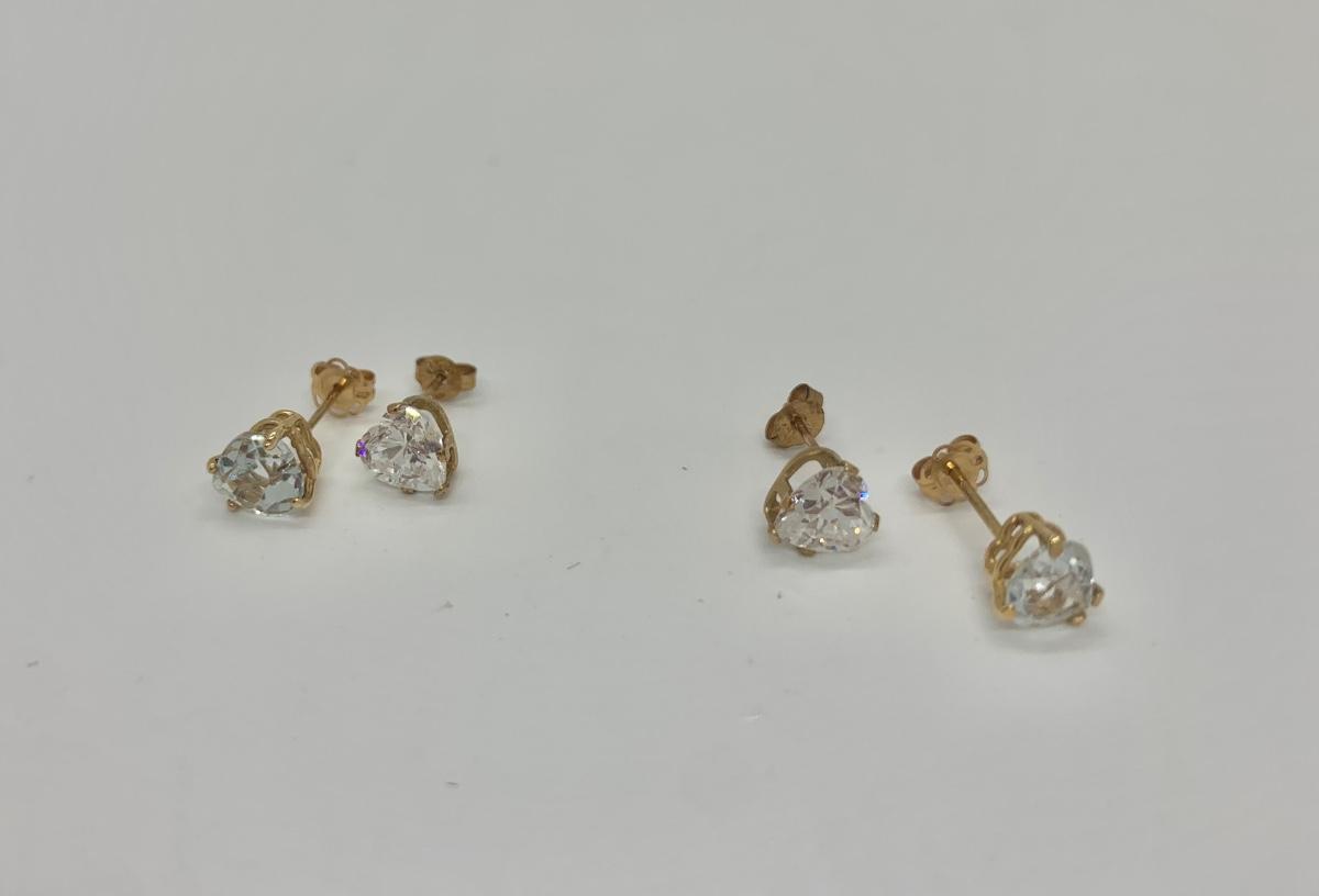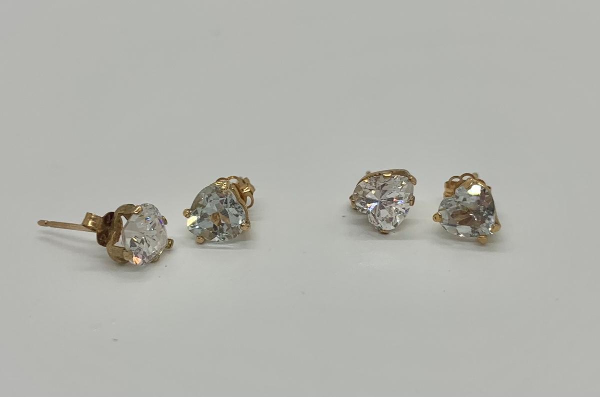 70: 417/10K yellow gold aquamarine heart pierced stud earrings and a clear CZ pair too