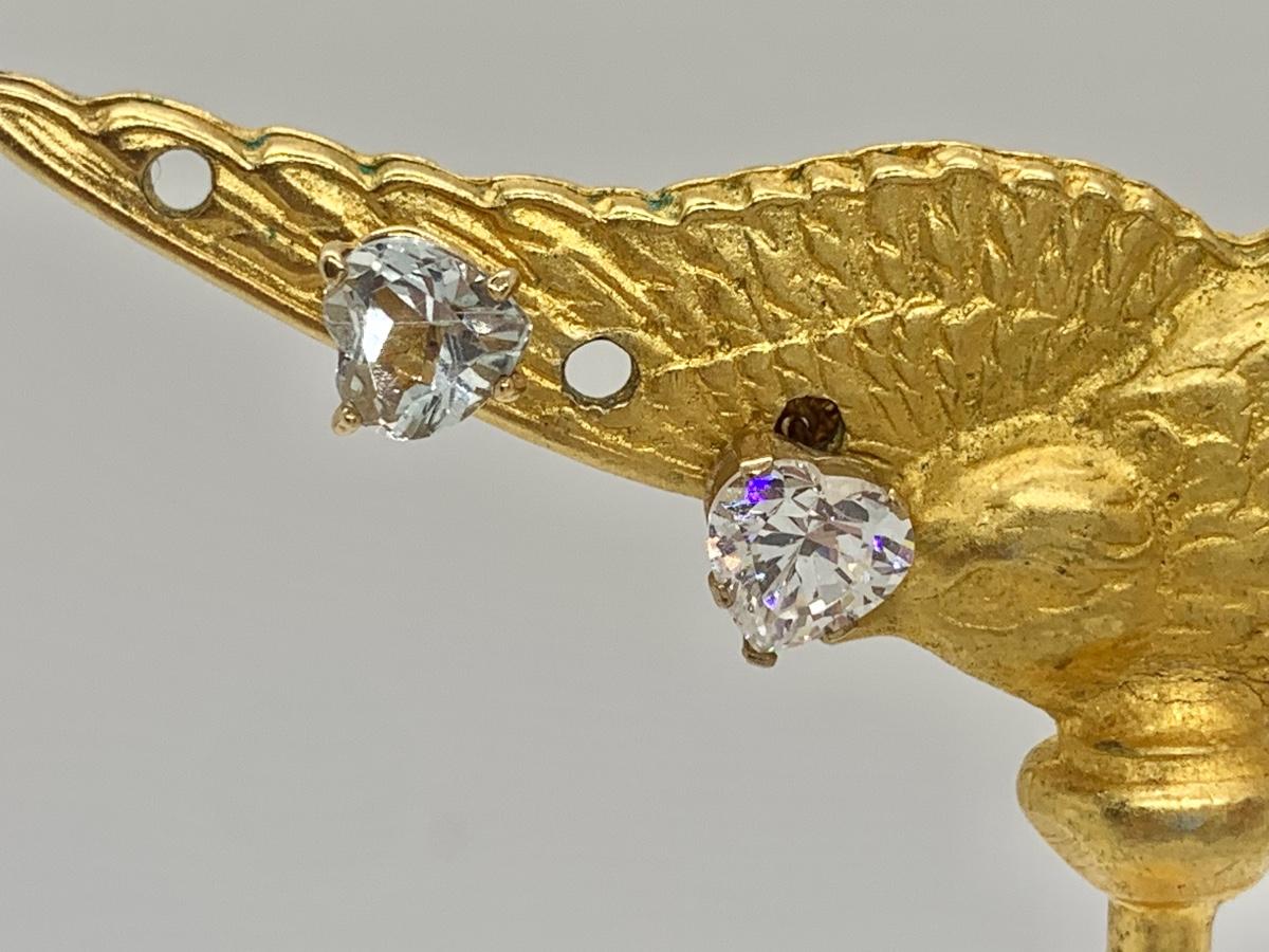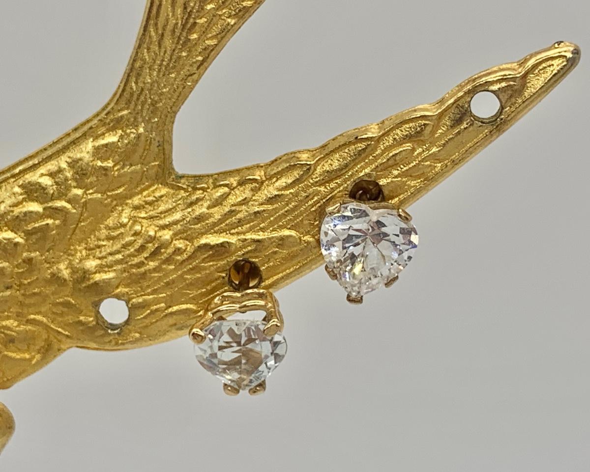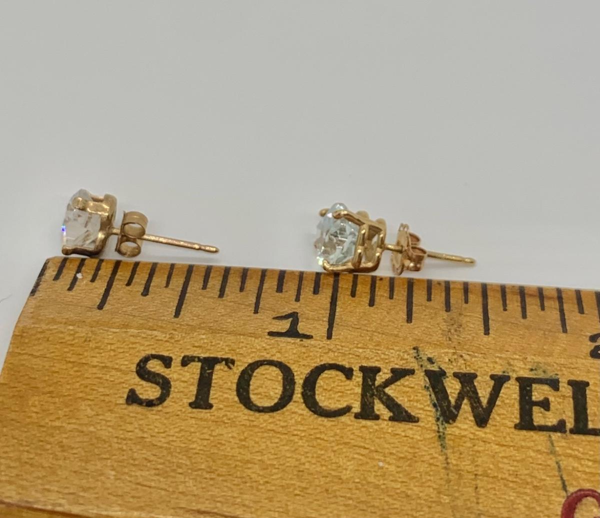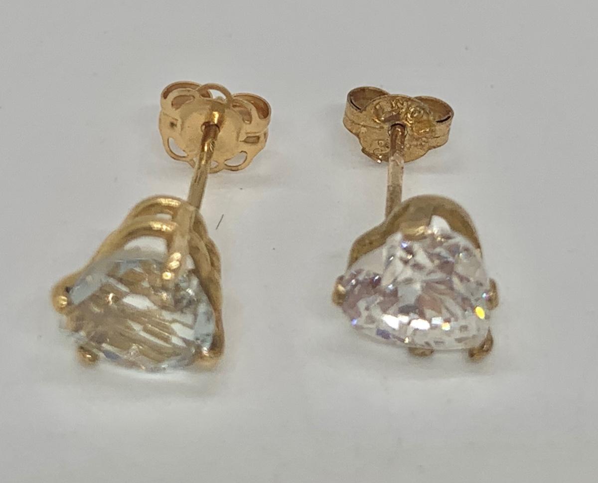 70: 417/10K yellow gold aquamarine heart pierced stud earrings and a clear CZ pair too
