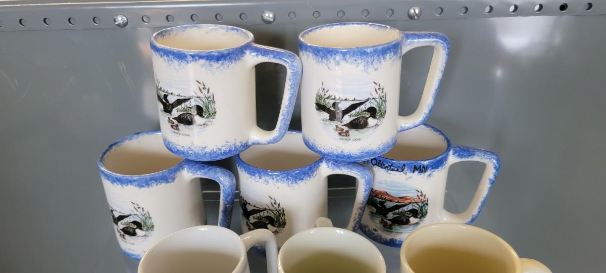 Assortment of mugs, Common loon, miscellaneous.