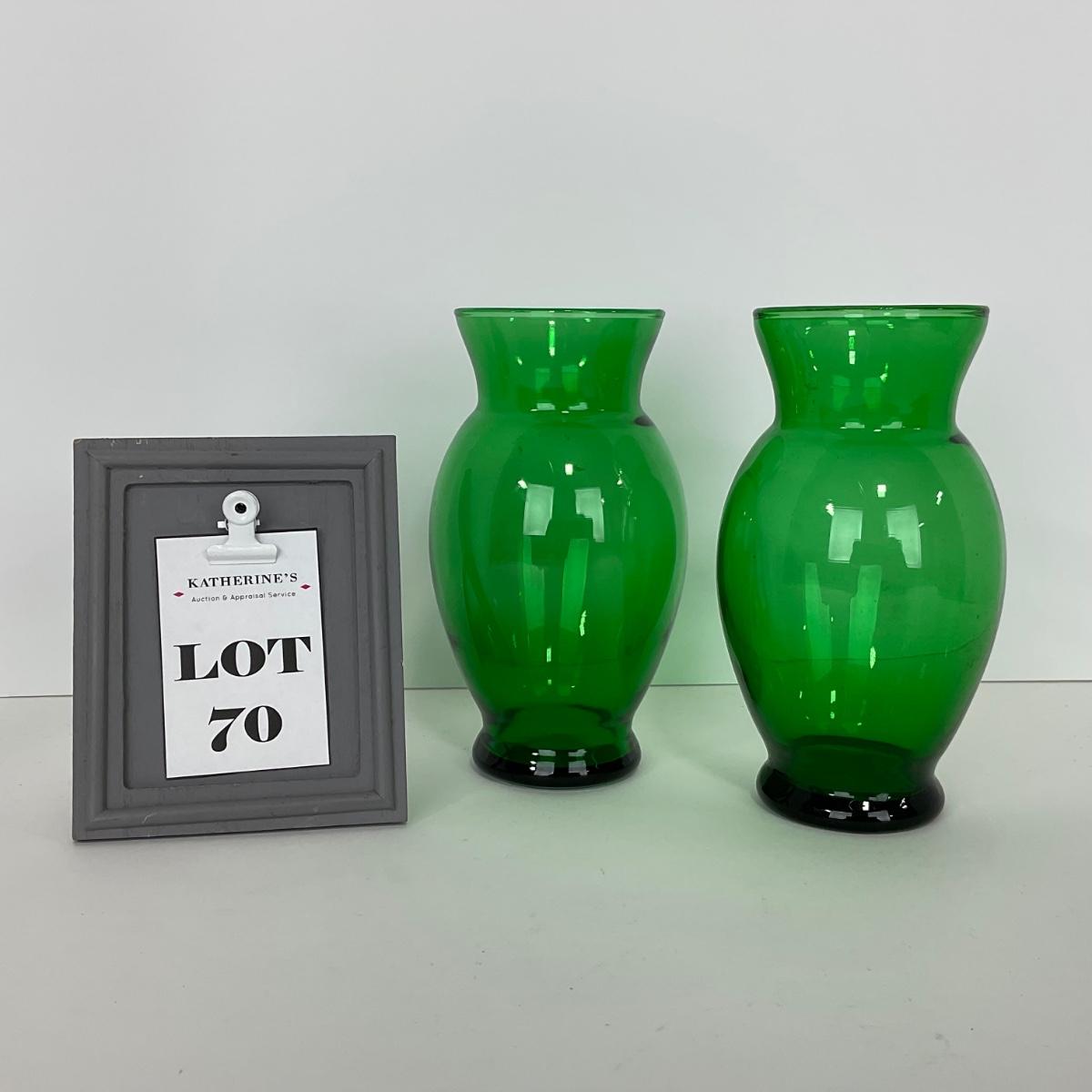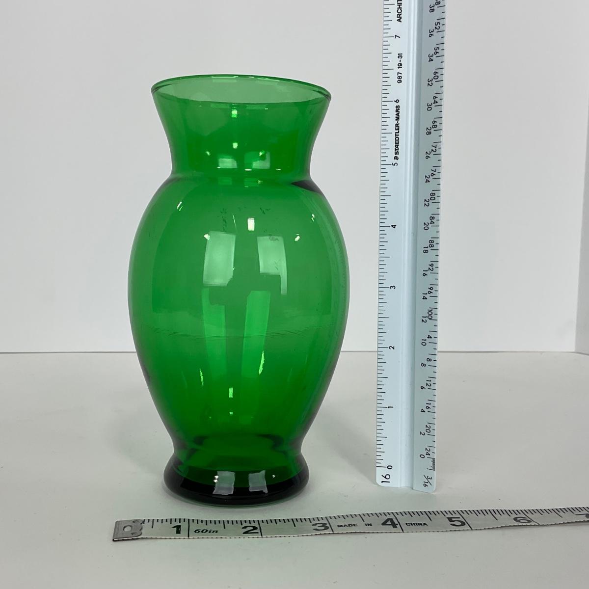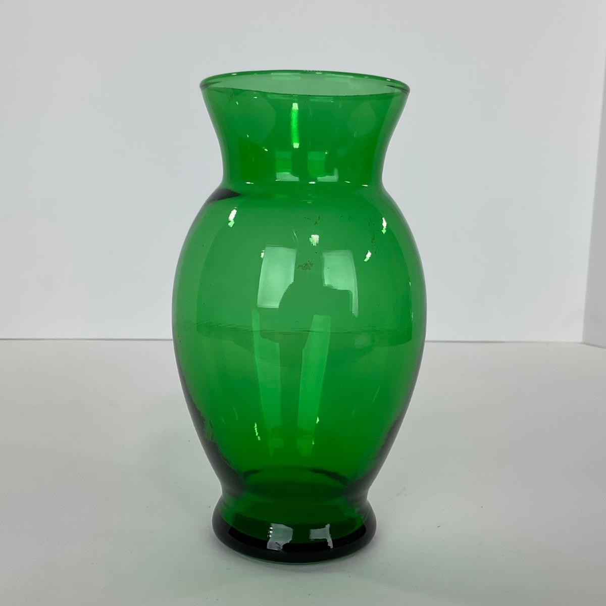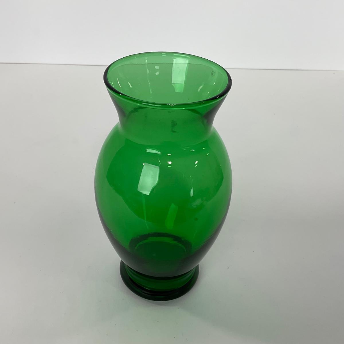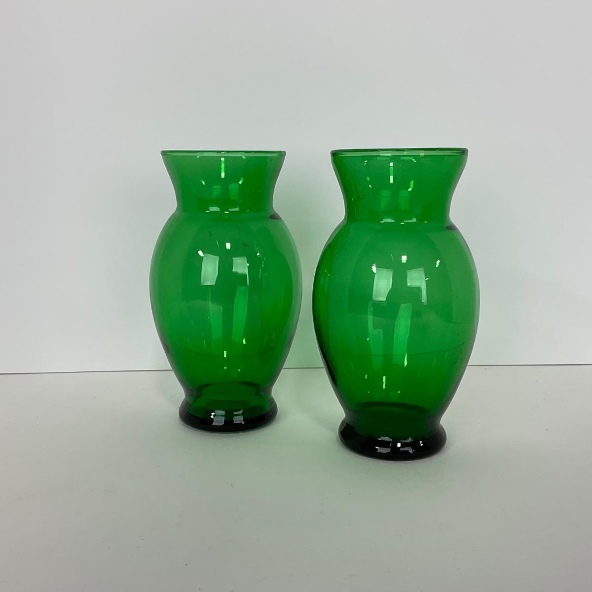 Two forest green Anchor Hocking Glass Co. vases. Please see photos for details and condition. ::: Shipping is available on this lot. If you require shipping you must let us know at the close of the auction. We will coordinate with you after the item has been won. Shipping fees will include insurance up to or exceeding the value of all items being mailed. If you have any questions regarding this lot please contact the auctioneer either via this website, by direct email or by phone. PICK UP TIMES and other important information can be found in the TERMS and DESCRIPTION of the auction. Please take a look for pertinent information. Thanks!