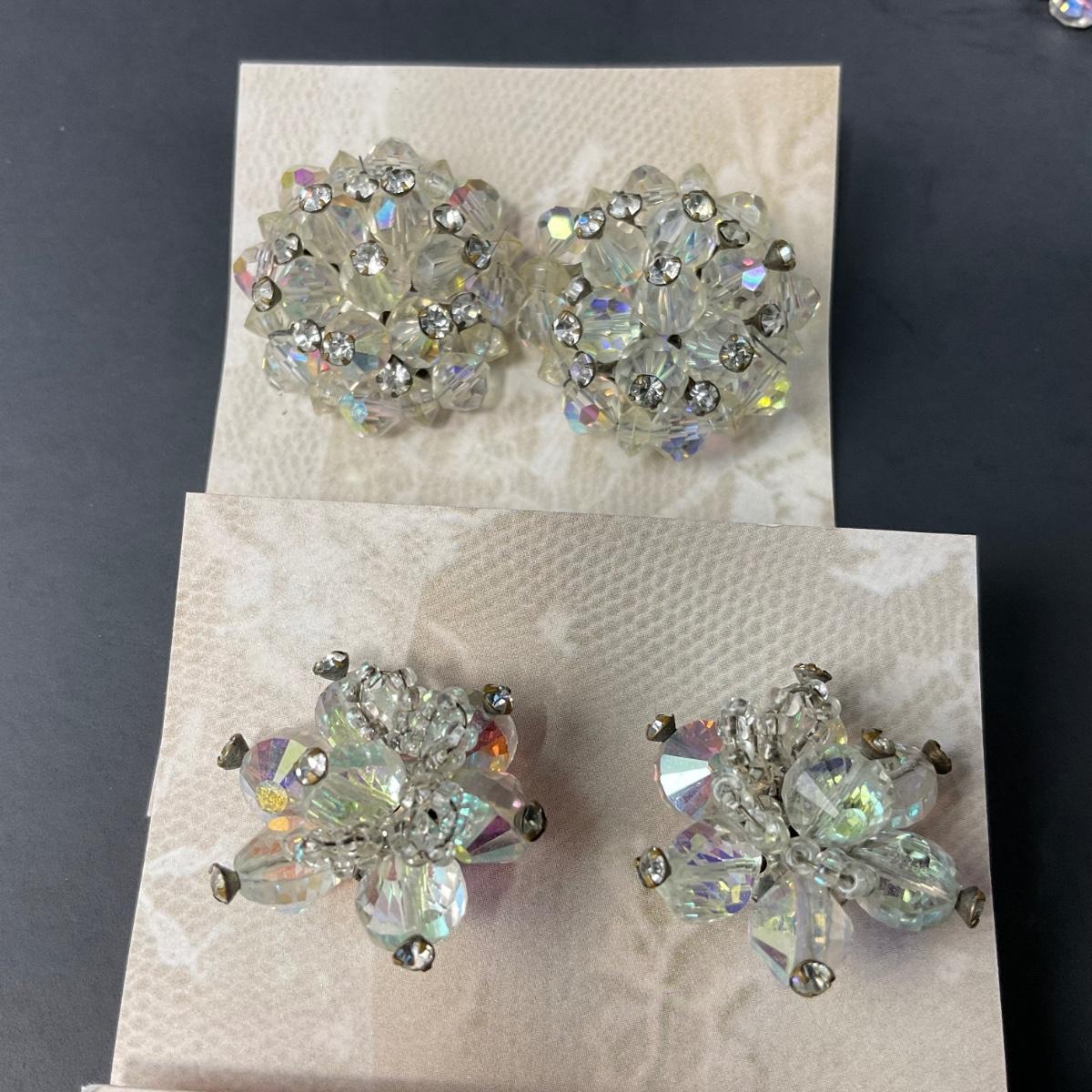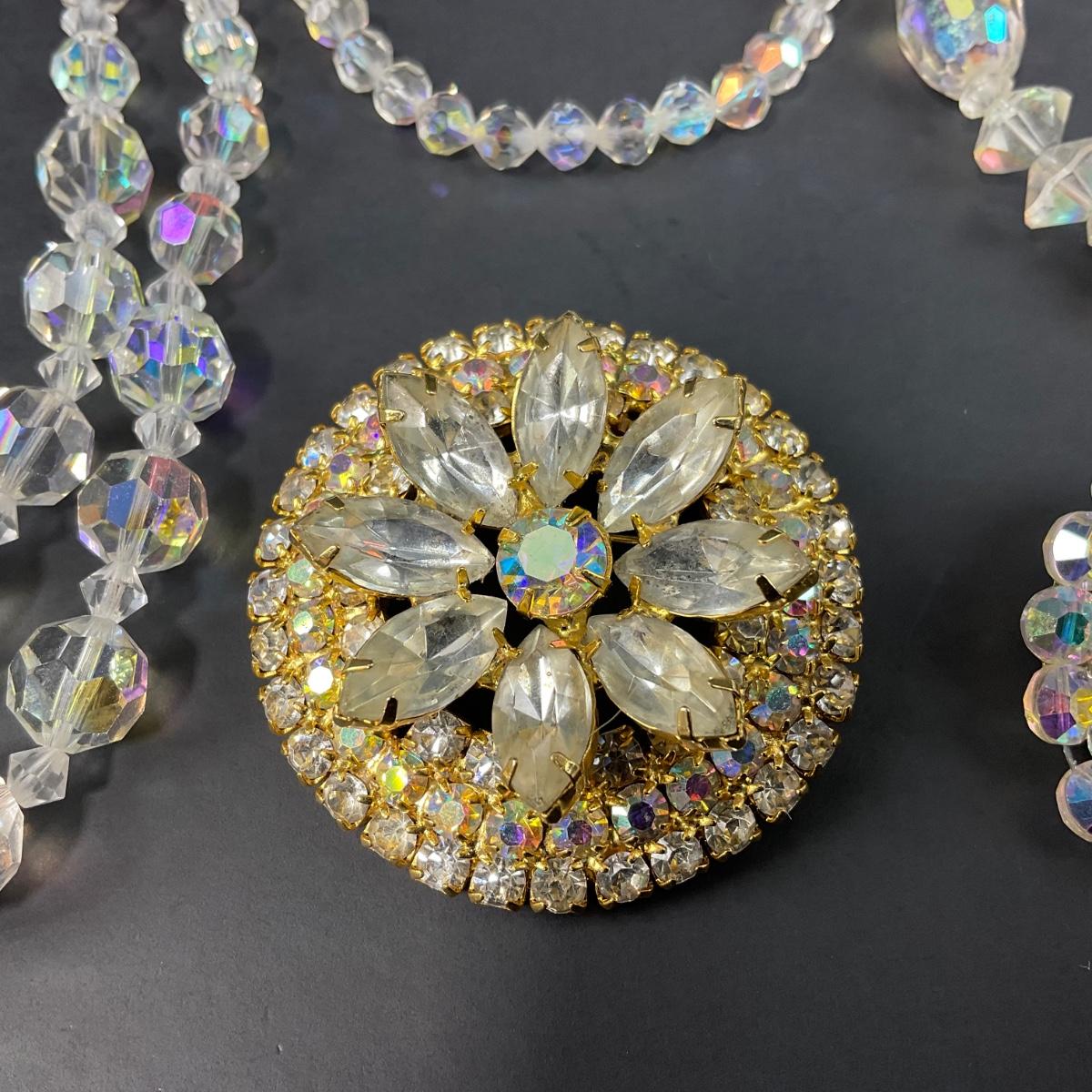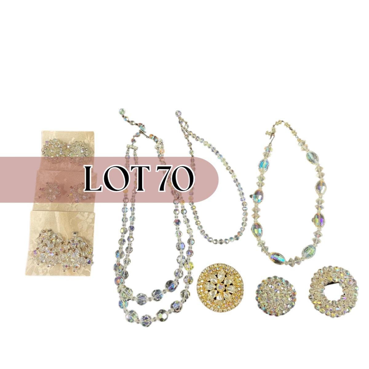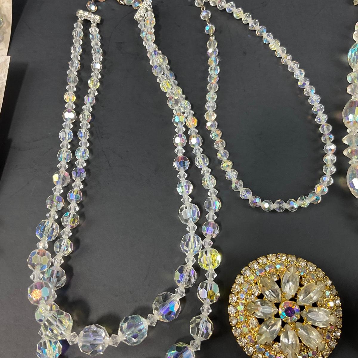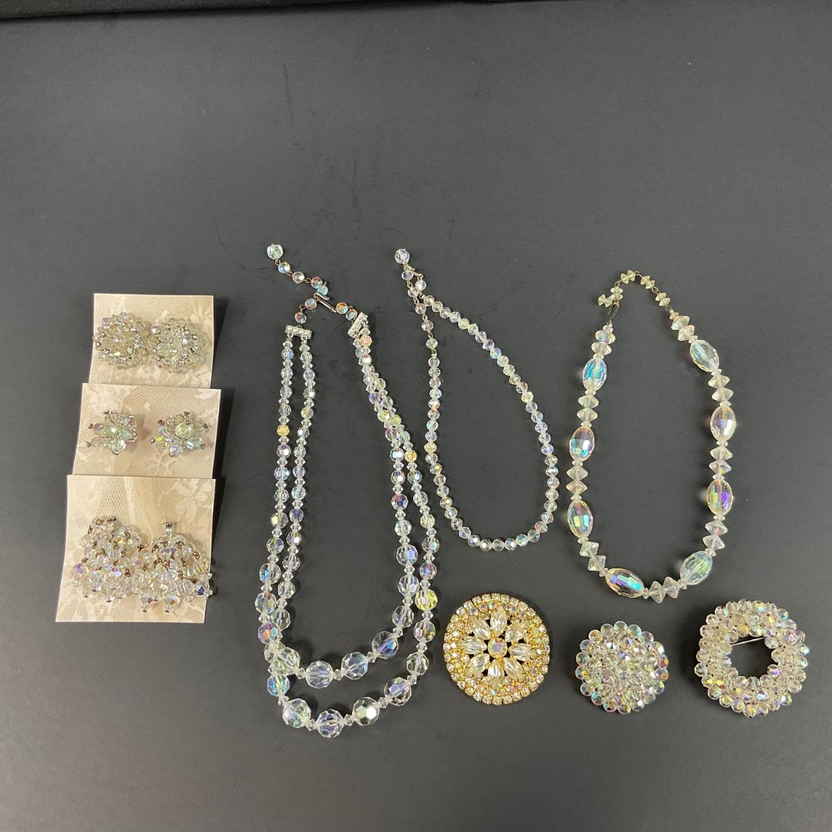 Assorted Aurora pieces including three sets of clip earrings: Laguna, Vendome, and unmarked. Three necklaces, and three brooches. Please see photos for details and condition. Any condition statement is given as a courtesy to a client, is an opinion, and should not be treated as a statement of fact. Reference to condition written, oral or within a condition report shall not be regarded as a full account of condition and may not include all defects, alterations, or restorations. Absence of a condition report does not imply a lot is flawless or lacking imperfections or damage. Katherine’s Auction & Appraisal Service shall have no responsibility for any error or omission. Returns shall not be accepted on the basis of condition. ::: Shipping is available on this lot. If you require shipping you must let us know at the close of the auction. We will coordinate with you after the item has been won. Shipping fees will include insurance up to or exceeding the value of all items being mailed. If you have any questions regarding this lot please contact the auctioneer either via this website, by direct email or by phone. PICK UP TIMES and other important information can be found in the TERMS and DESCRIPTION of the auction. Please take a look for pertinent information. Thanks!