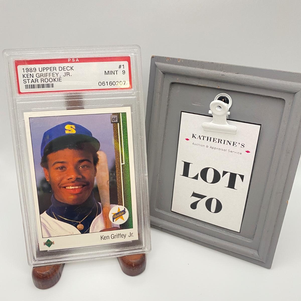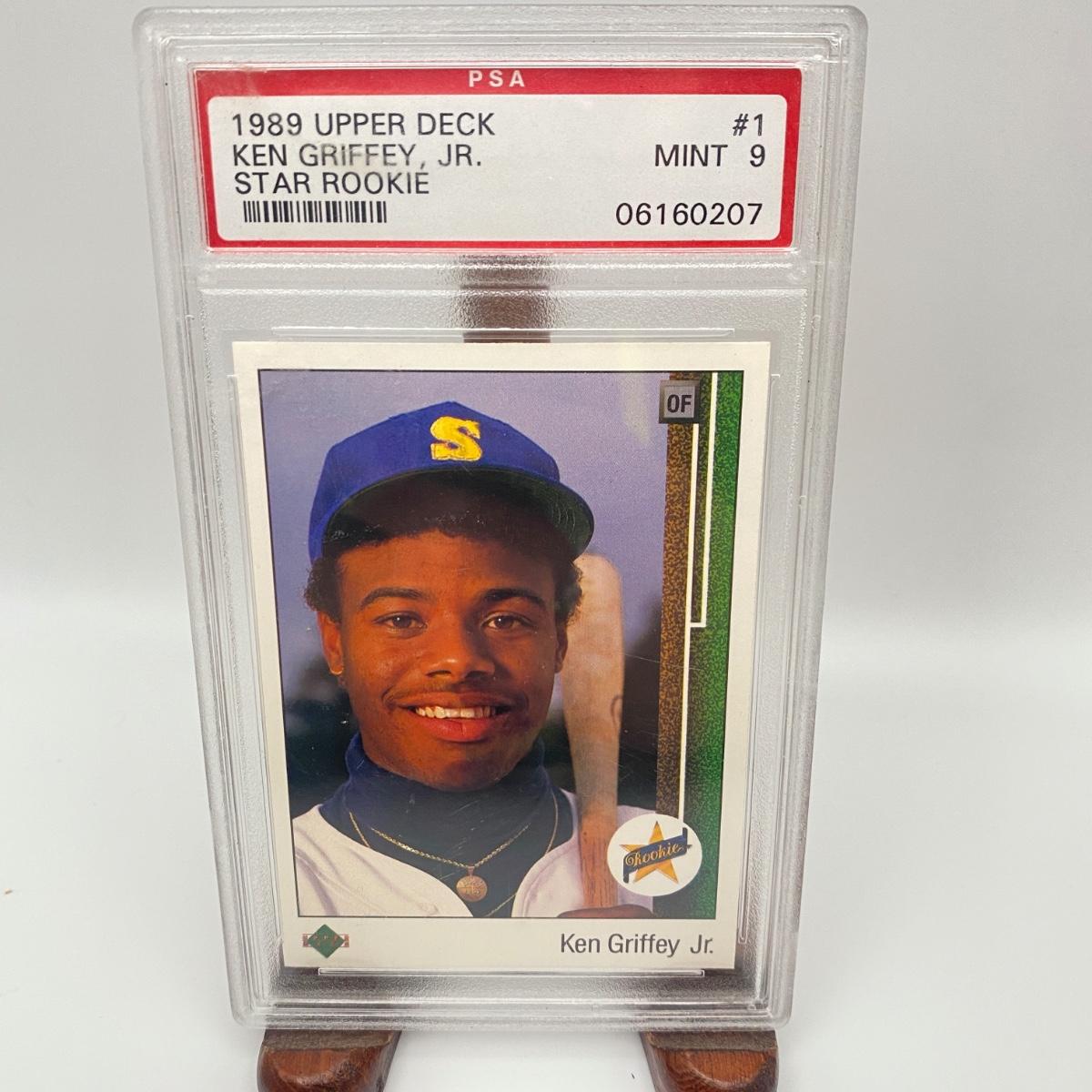 One 1989 Upper deck Ken Griffey Jr. Star rookie graded mint 9 card. Please see photos for details and condition. ::: Shipping is available on this lot. If you require shipping you must let us know at the close of the auction. We will coordinate with you after the item has been won. Shipping fees will include insurance up to or exceeding the value of all items being mailed. If you have any questions regarding this lot please contact the auctioneer either via this website, by direct email or by phone. PICK UP TIMES and other important information can be found in the TERMS and DESCRIPTION of the auction. Please take a look for pertinent information. Thanks!
