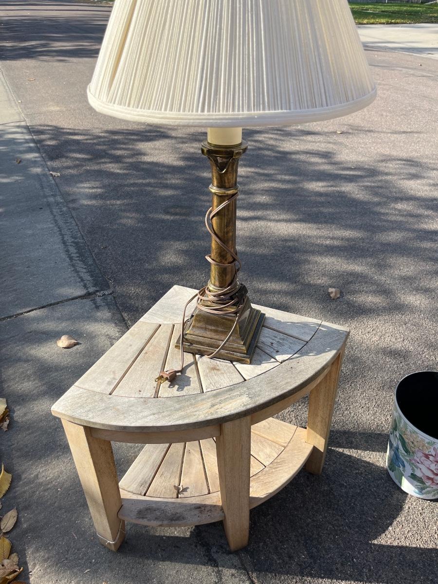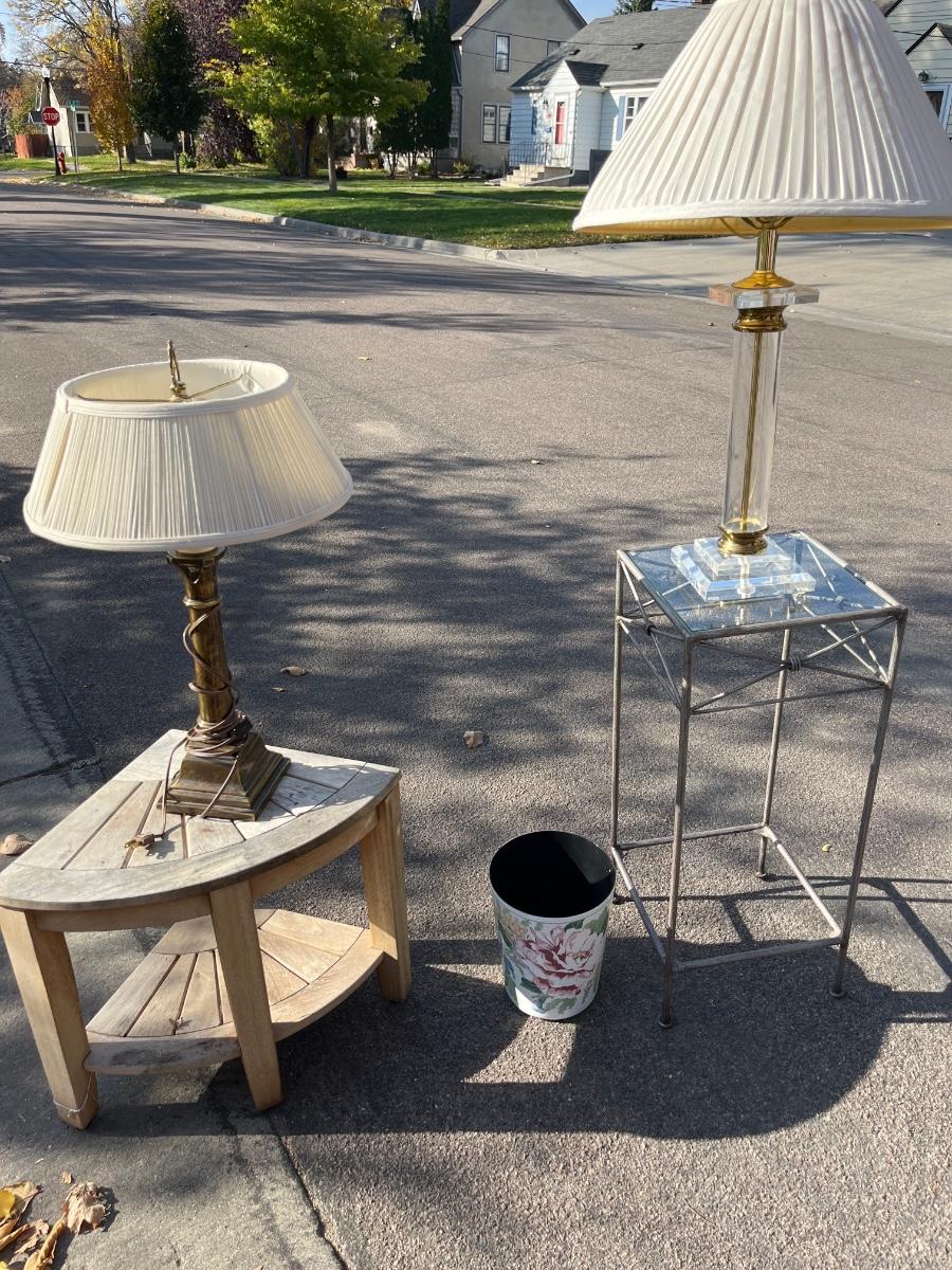 70- metal/glass table, acrylic, lamp, bath tub, stand, brass lamp