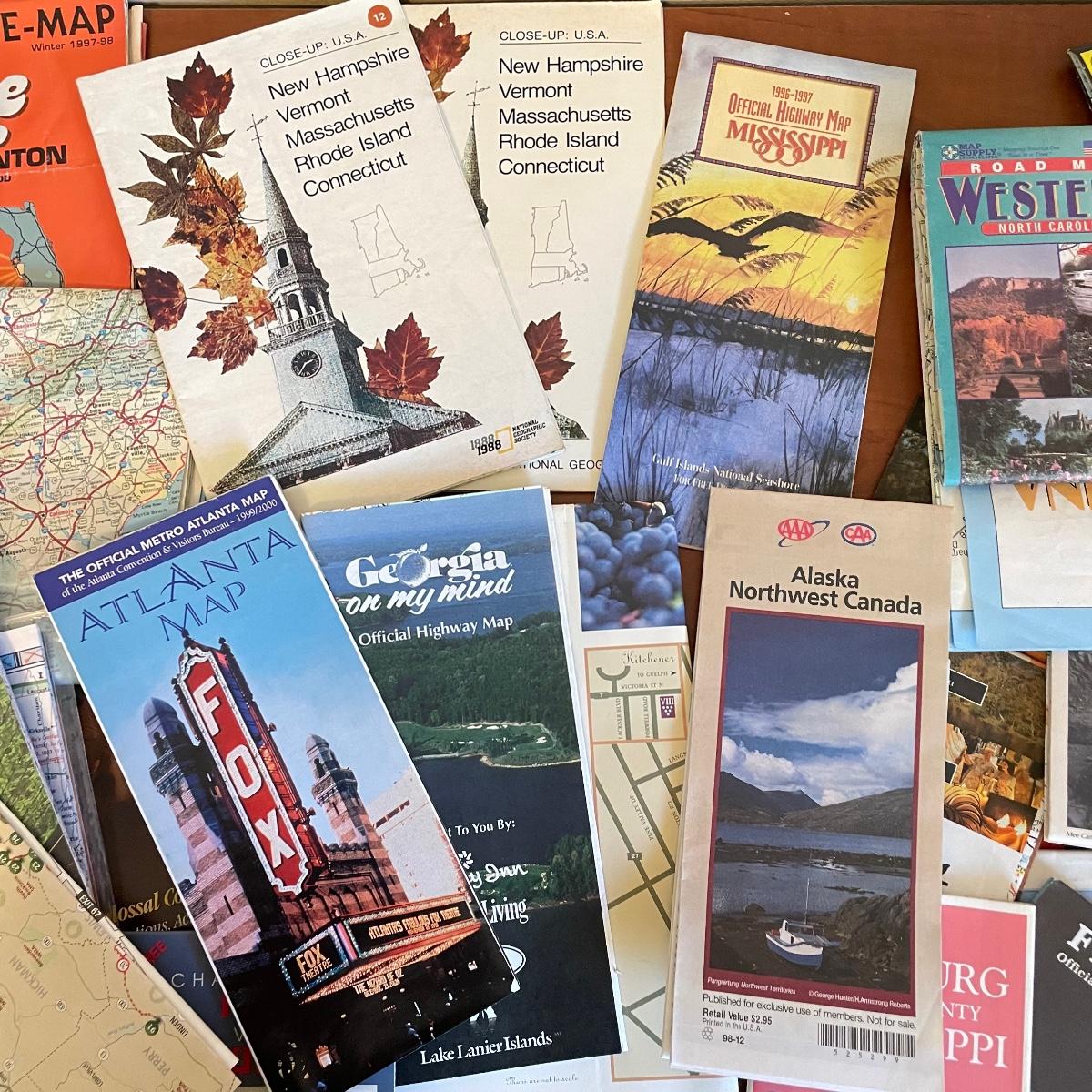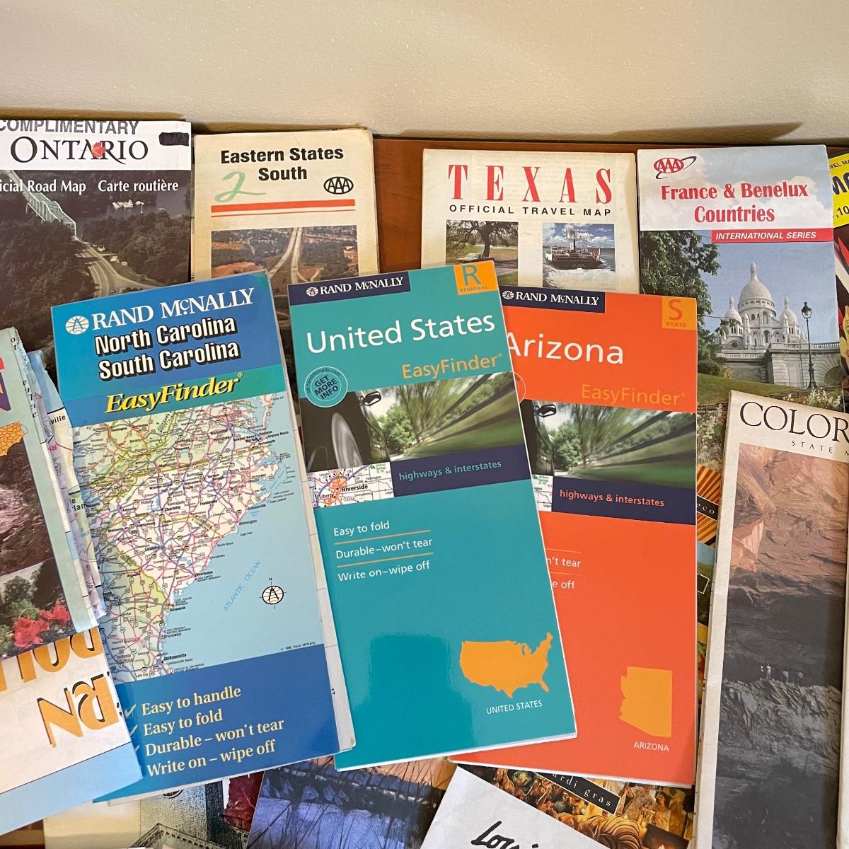 Huge collection of maps, both vintage and newer, domestic and abroad. Lot even has a few motorcycle guides. See images. Shipping available.