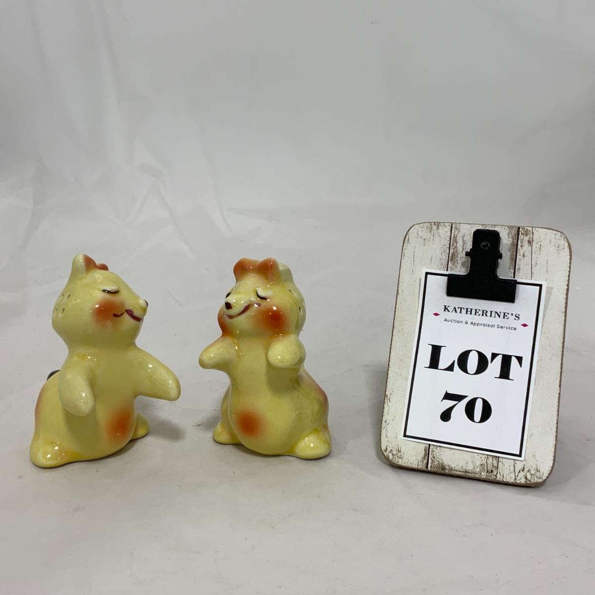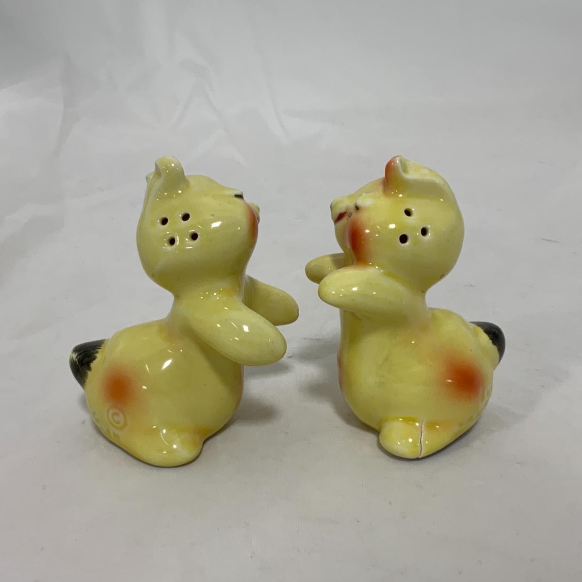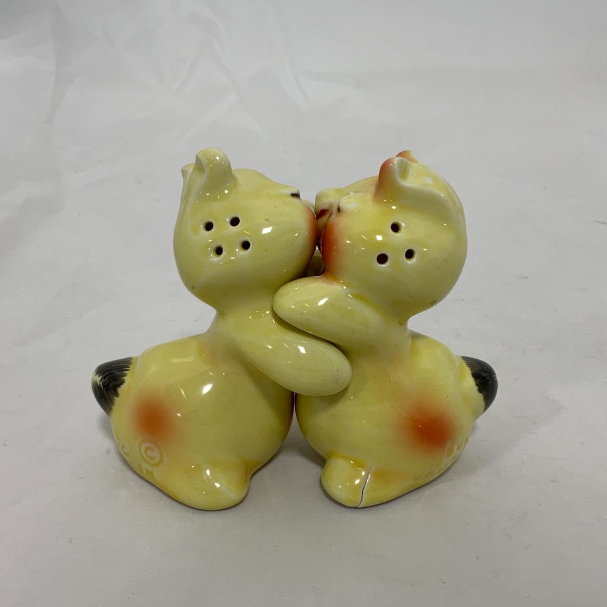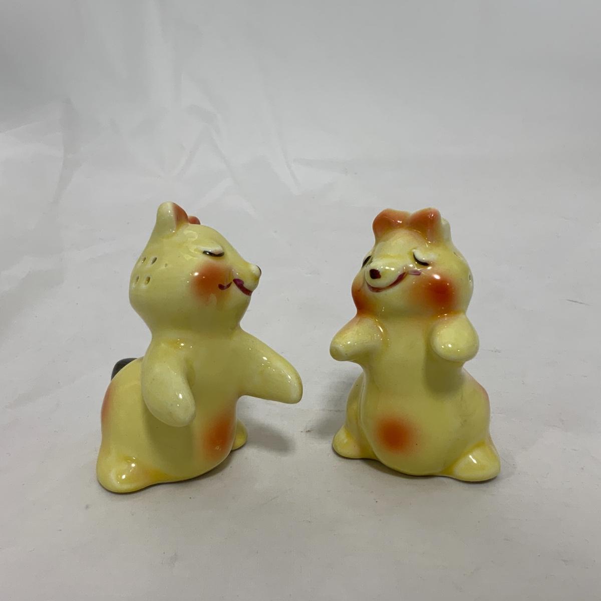 From the Estate of Peter and Alice Radovanovich: Attractive Yellow and orange set of 1950s Van Tellingen Huggies. One of the bunnies does have a crack - a manufacturing flaw, which is pictured. Please see photos for details and condition. ::: Shipping is available on this lot. If you require shipping you must let us know at the close of the auction. We will coordinate with you after the item has been won. Shipping fees will include insurance up to or exceeding the value of all items being mailed. If you have any questions regarding this lot please contact the auctioneer either via this website, by direct email or by phone. PICK UP TIMES and other important information can be found in the TERMS and DESCRIPTION of the auction. Please take a look for pertinent information. Thanks!