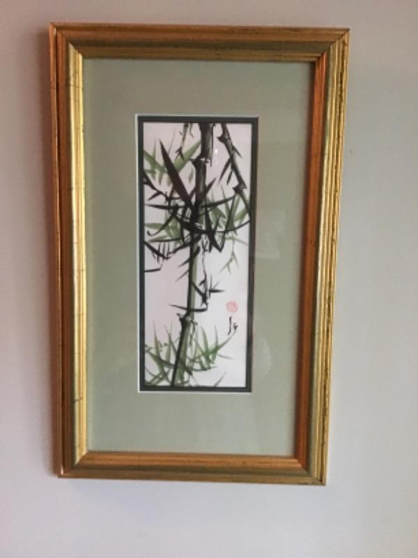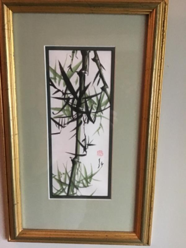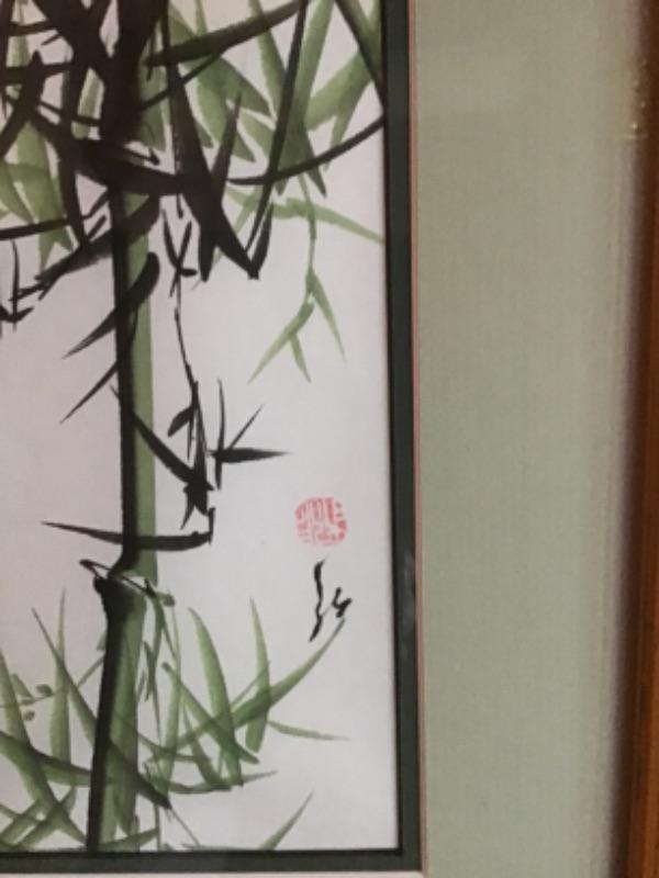 Signed / Stamped Japanese Watercolor of Bamboo,