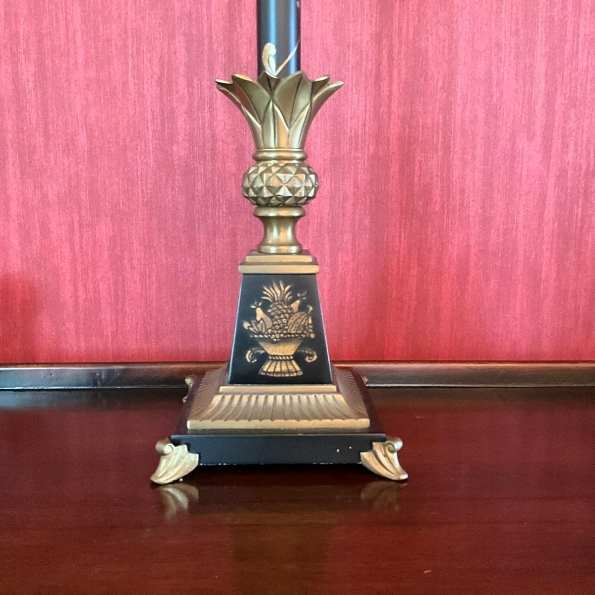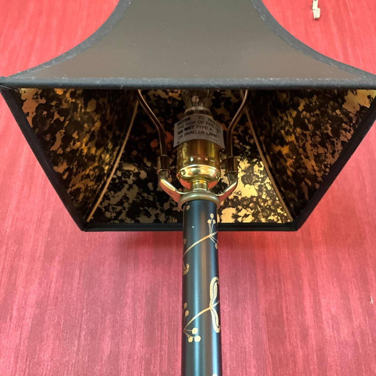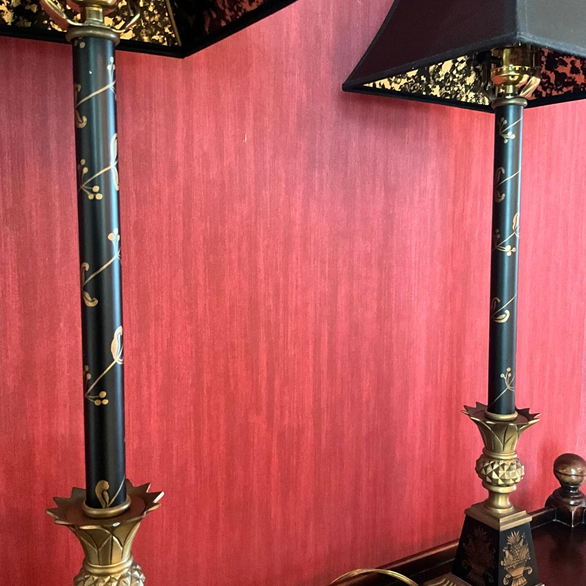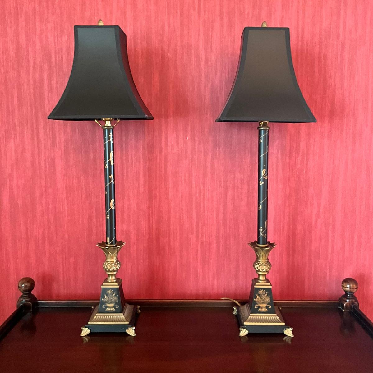 703 Pair of Black & Gold Painted Candle Stick Lamps