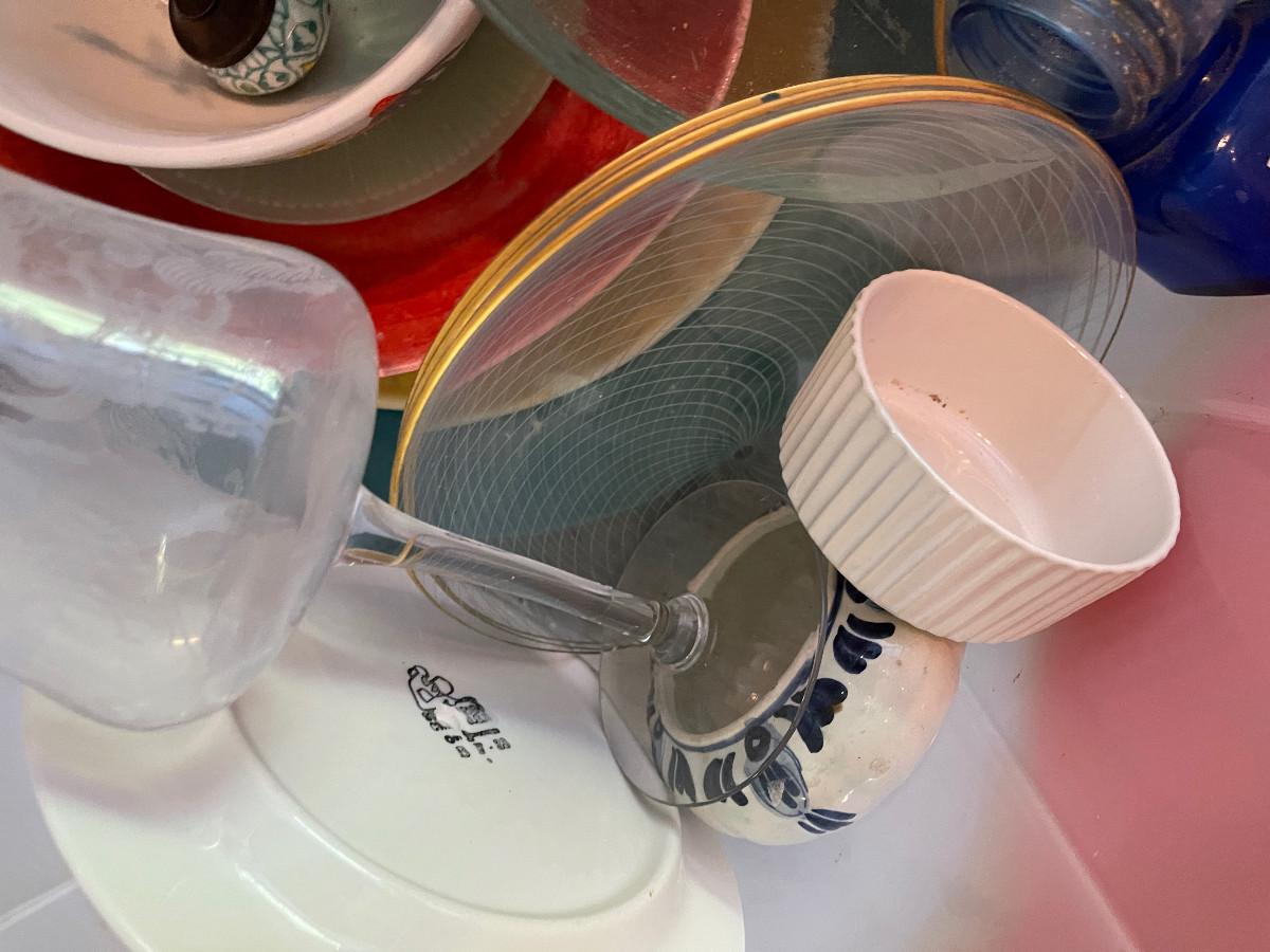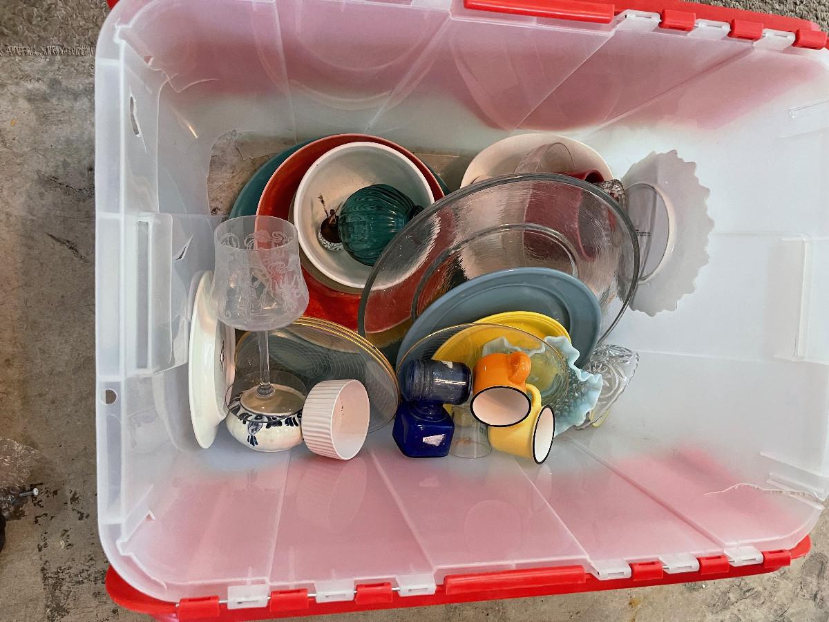 #704G Tub full of Drilled Glass and Ceramic Flower Makings