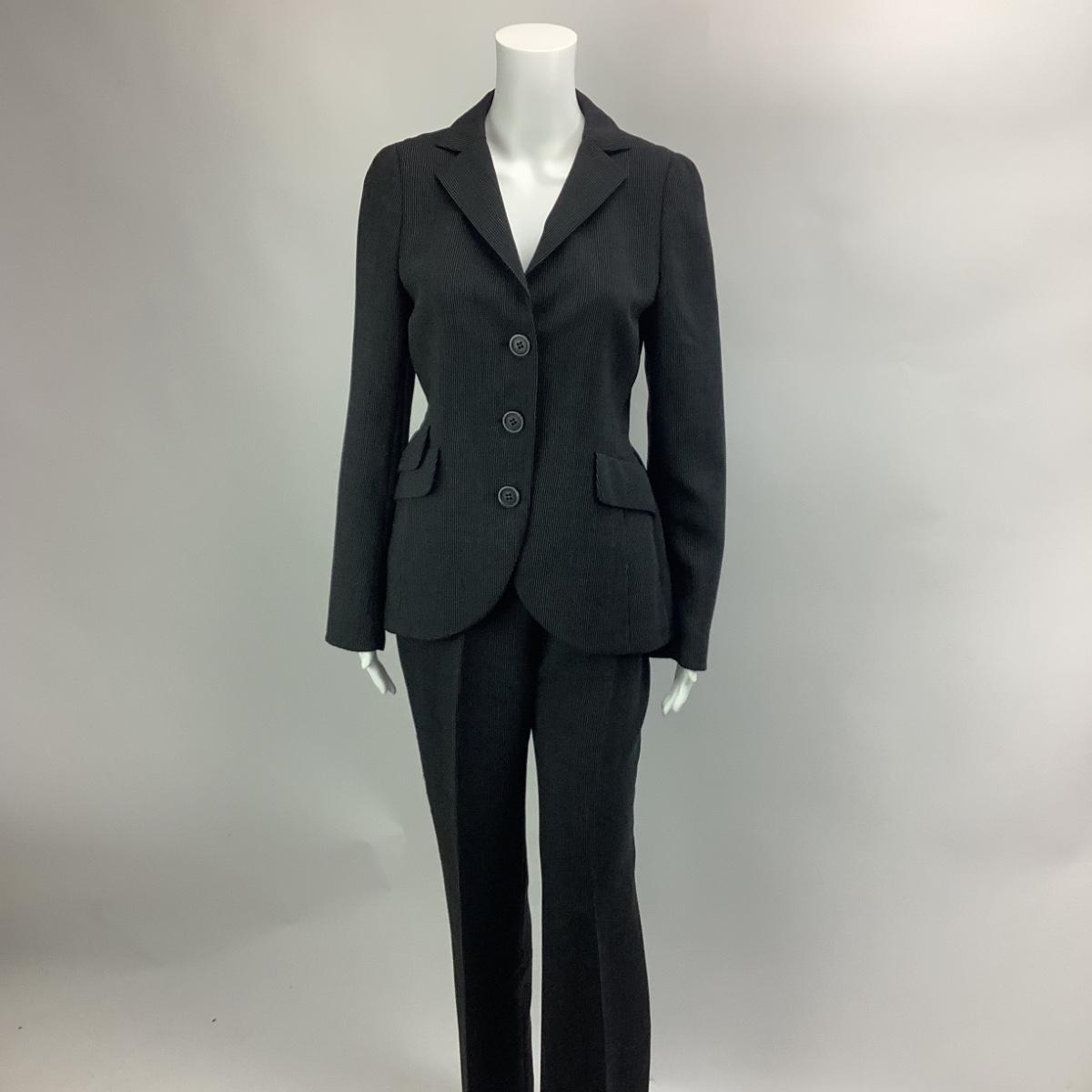 705 AKRIS Black Suit with White Pinstripes