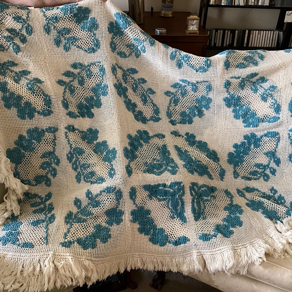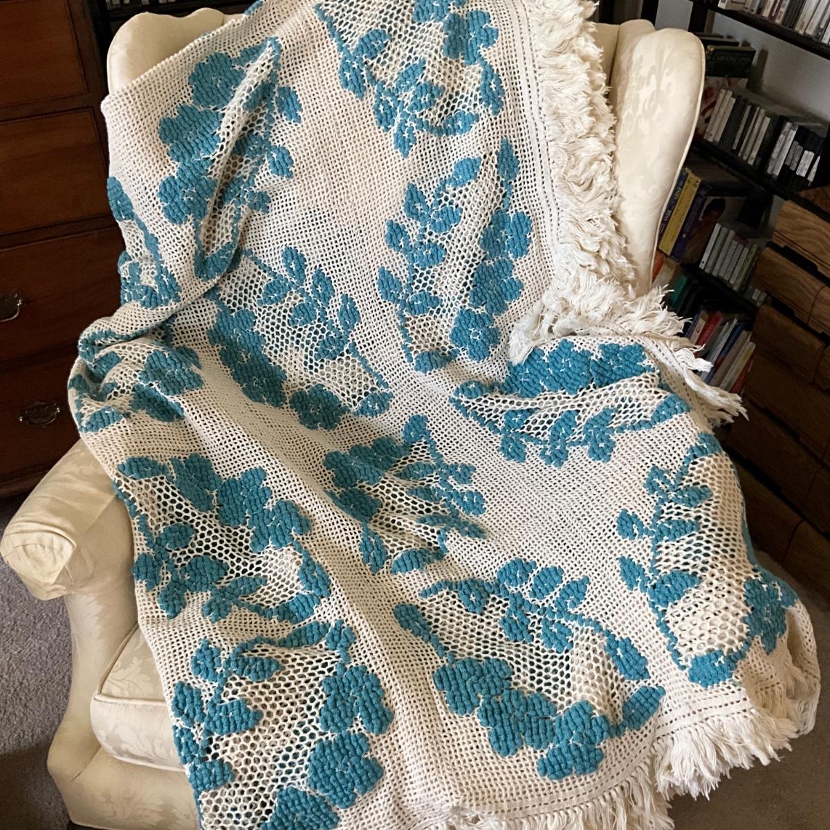 706 Hand Crocheted Double/Full Aqua & White Bedspread