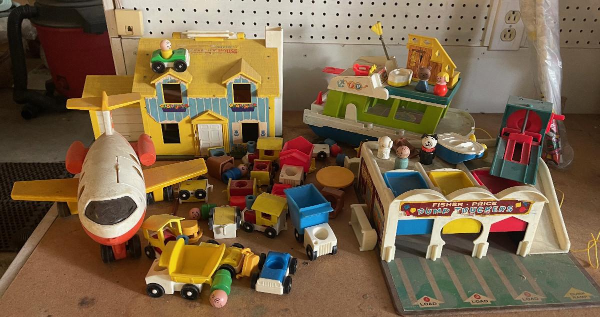 #707G Large Collection of Fisher Price: Airplane, Garage