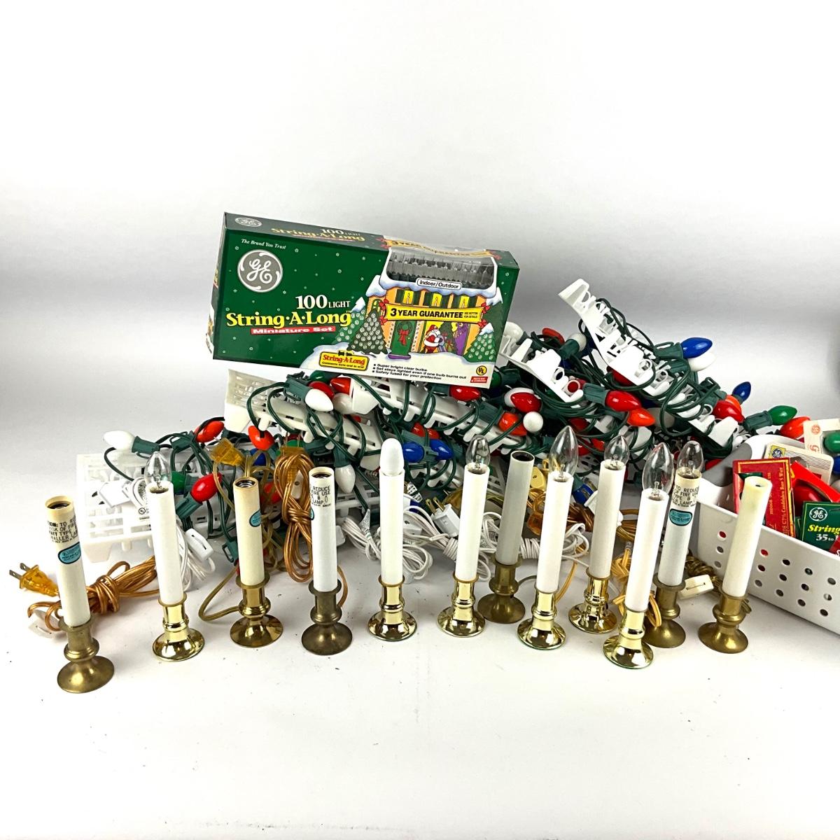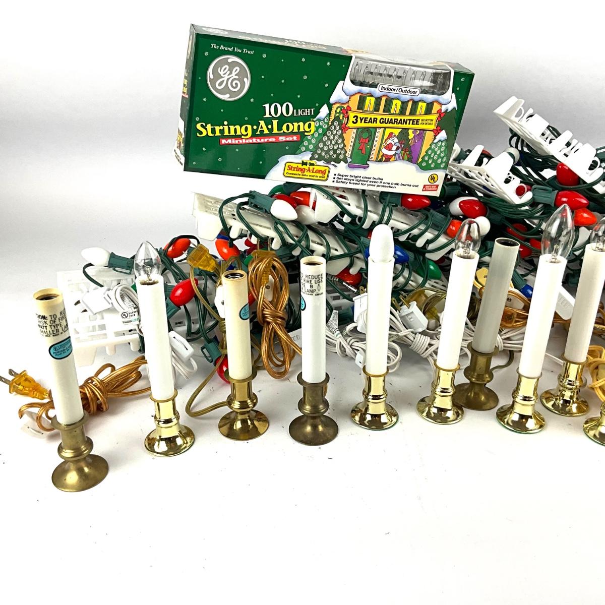 Indoor and outdoor strings of lights with 12 electric candlestick lamps
