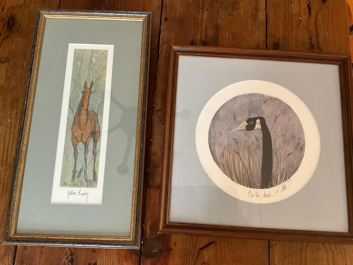 P. Buckley Moss Prints: "On The Alert" Signed 873/1000 - 15"H x 15"W & "Golden Beauty" Signed 959/1000 - 19.5"H x 10"W