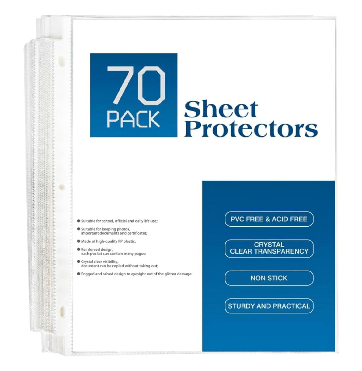 70Pack Sheet Protectors, Clear Heavy Duty Plastic Page Protectors for 3 Ring Binder, Top Loading Sheet Protectors 8.5 x 11” for Photo, Paper, Document Protector