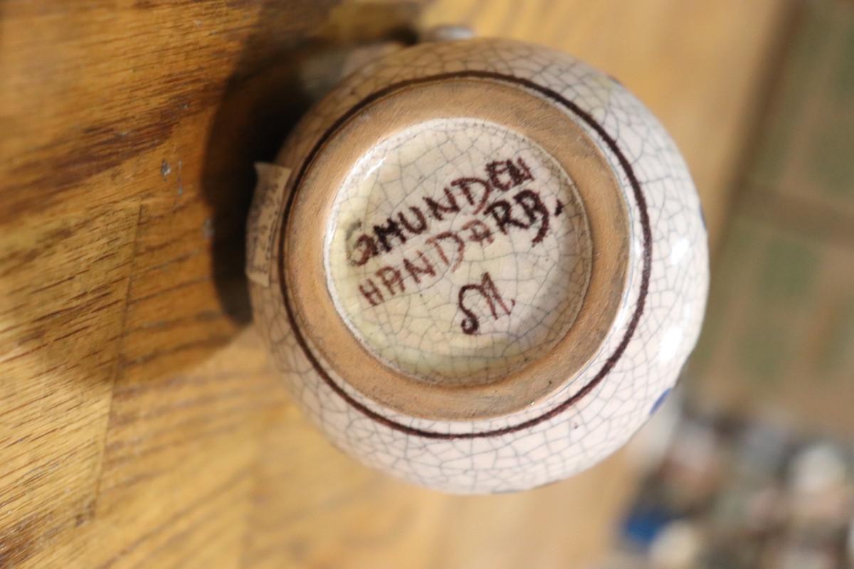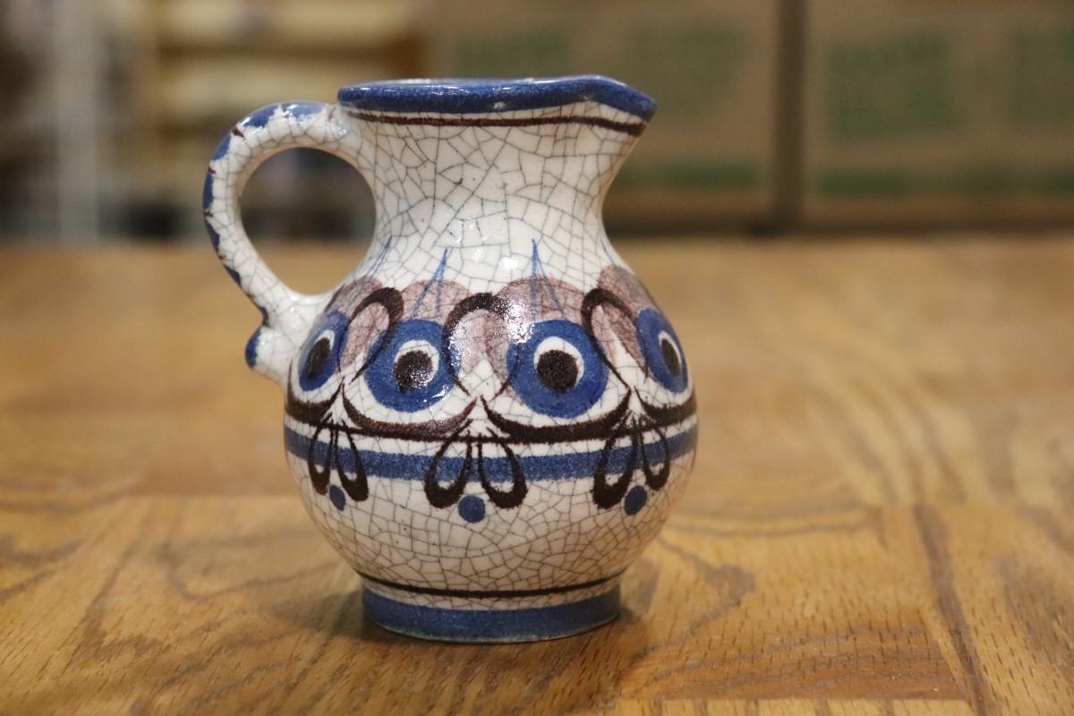 70s 80s Austrian Gmunden Handarbeit CRACKLE GLAZE Pottery CREAMER Folk Art White Blue and Burgundy