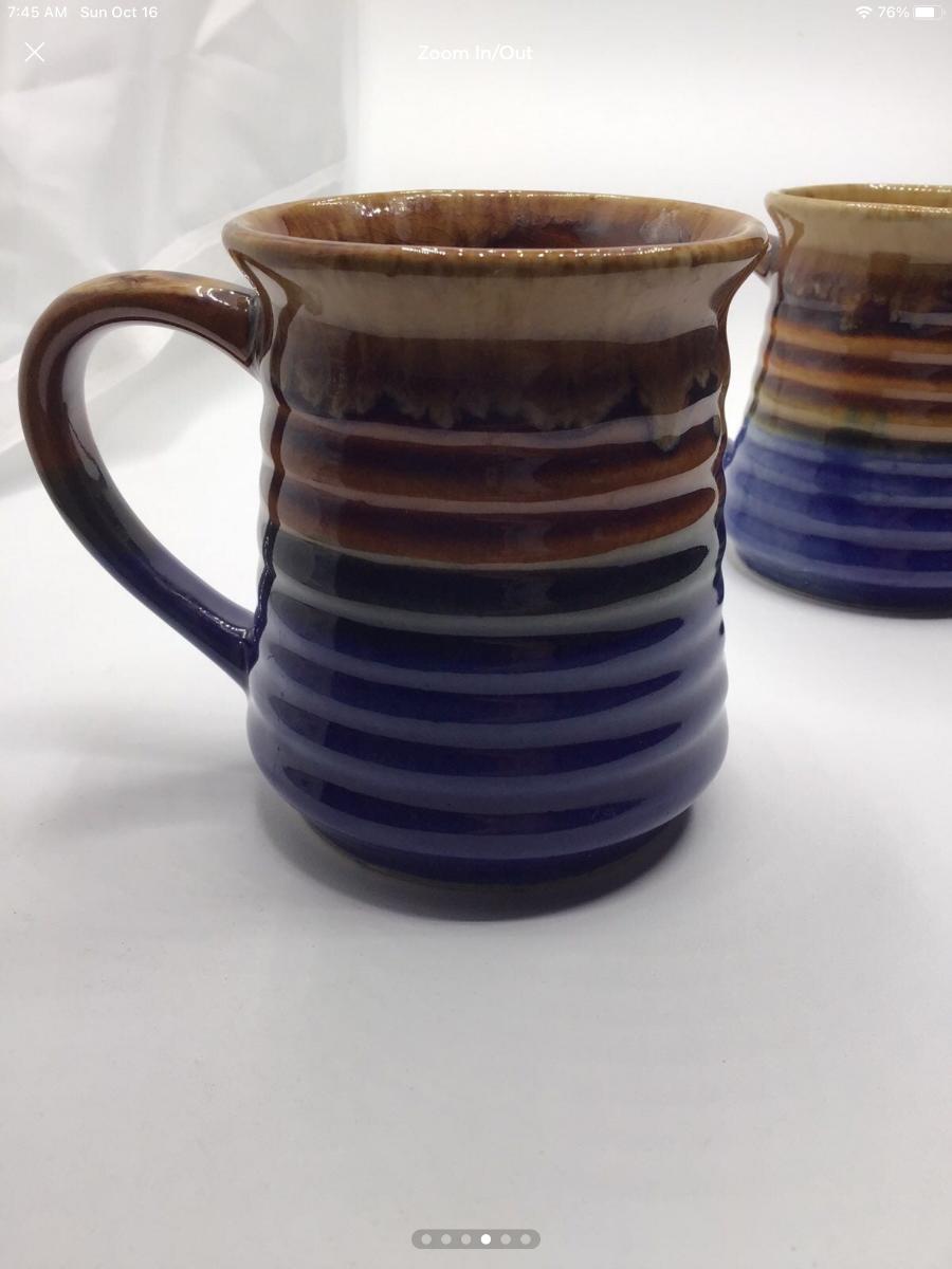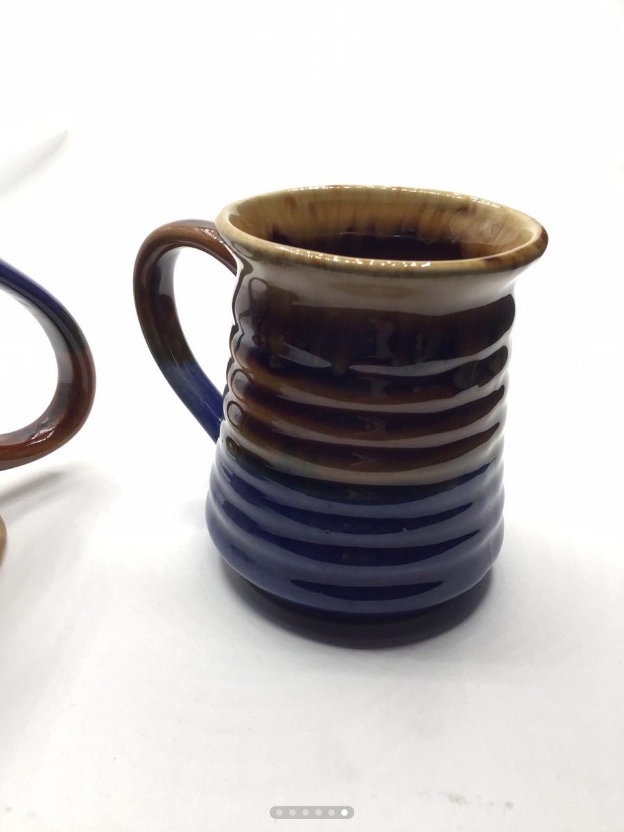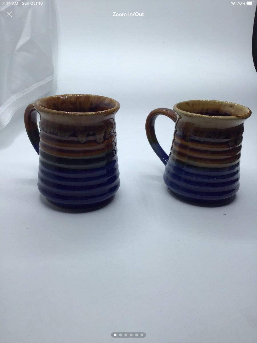 70s drip glaze Coffee Mugs Cups Turquoise/Cobalt/Brown Taiwan