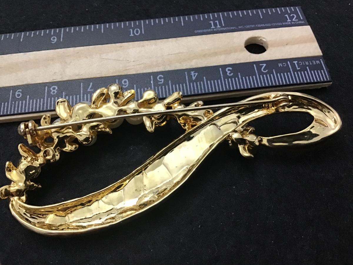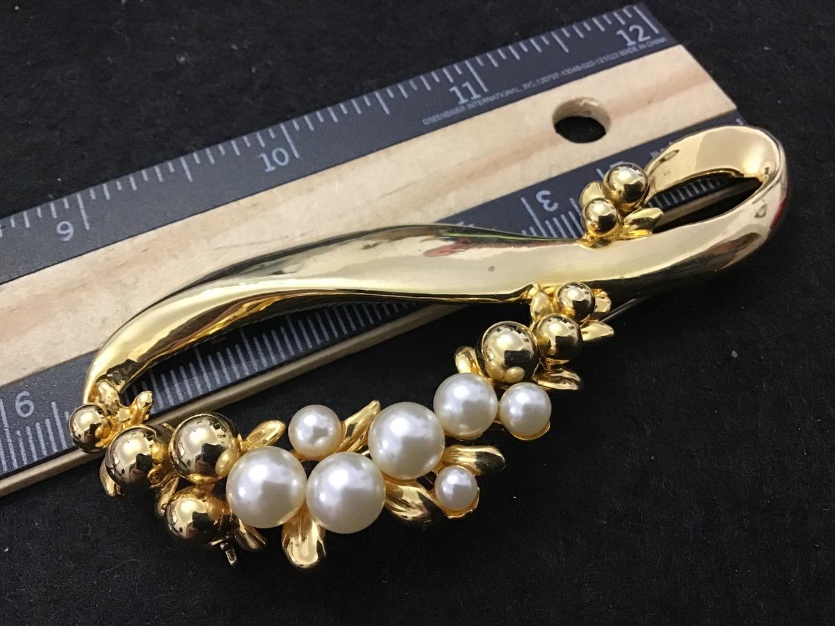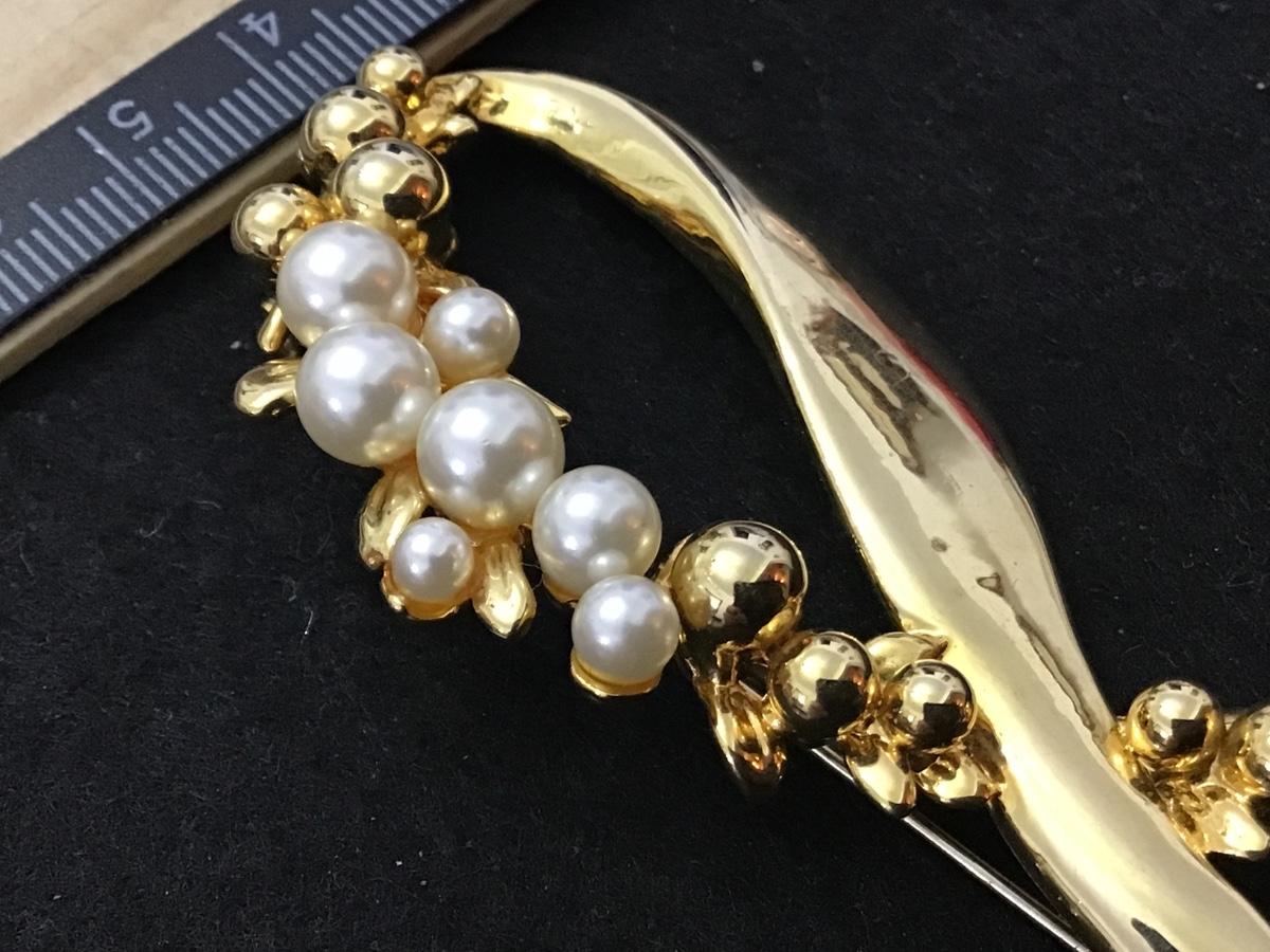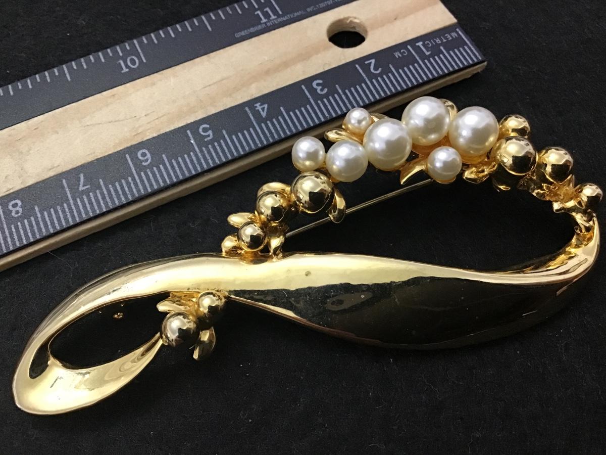 70s polished Gold Tone Faux Pearl Swirl Brooch
