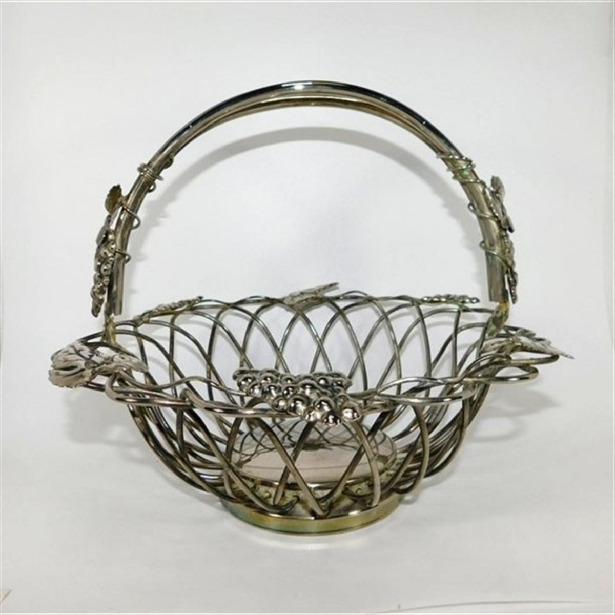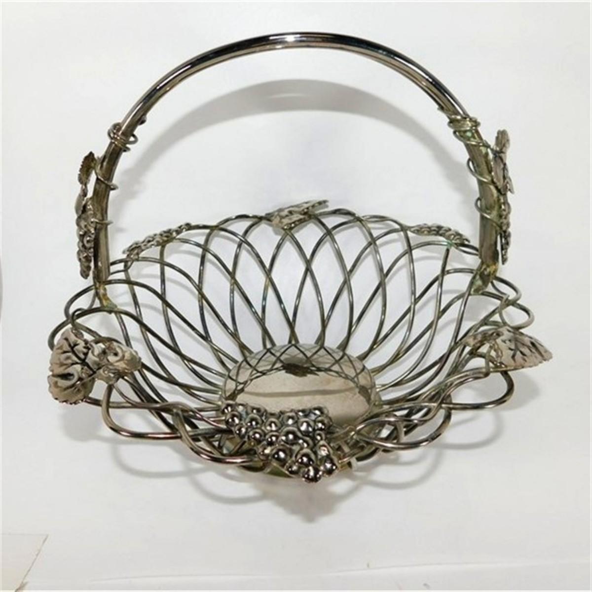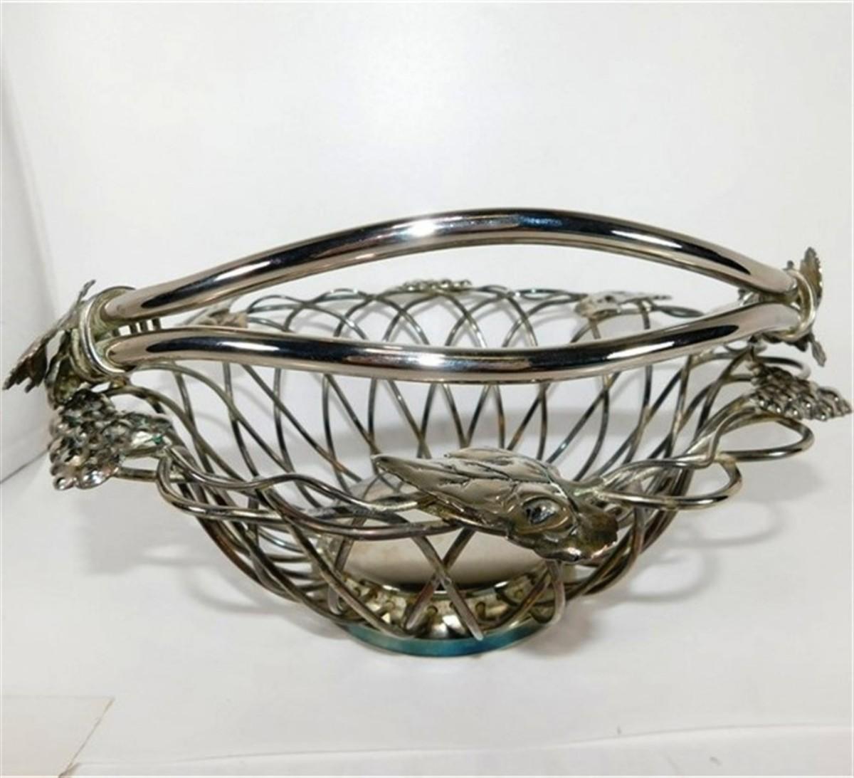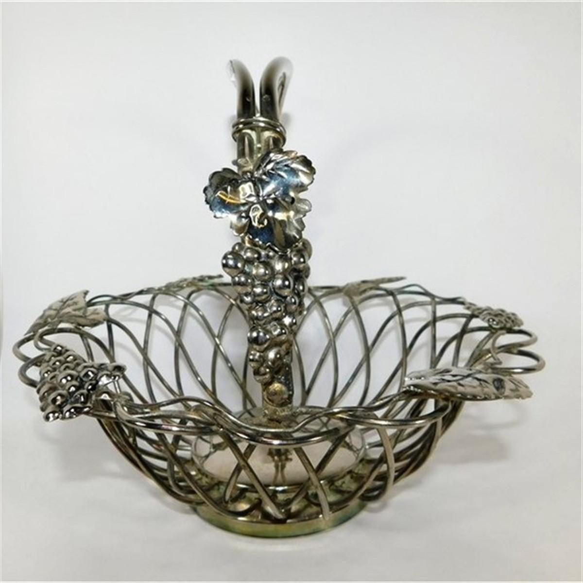 71 10 1/2" (with handle) Vintage Godinger Silverplated Grape Vine Centerpiece Basket Open Weave