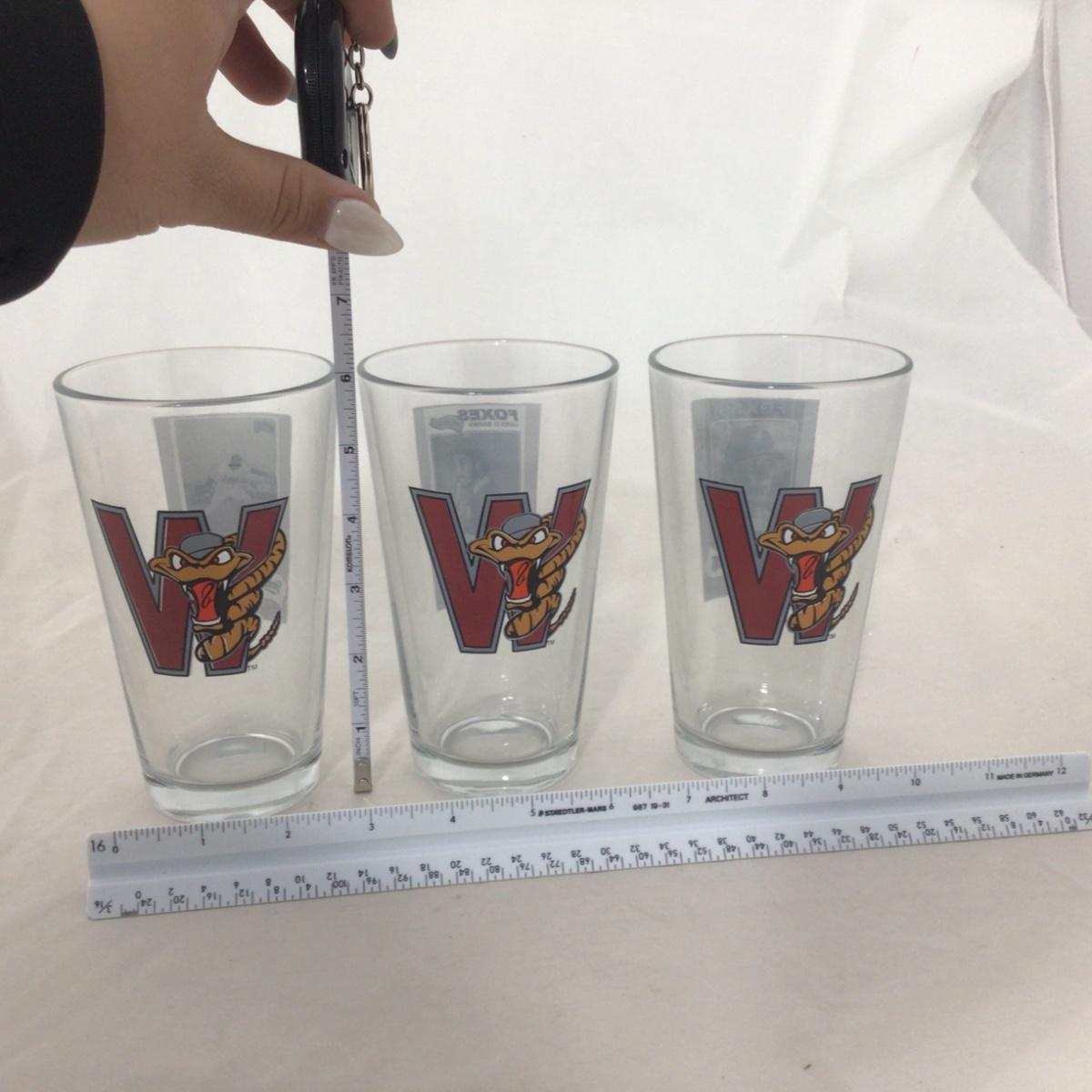 Three Timber Rattlers glasses. Please see photos for details and condition. ::: Shipping is available on this lot. If you require shipping you must let us know at the close of the auction. We will coordinate with you after the item has been won. Shipping fees will include insurance up to or exceeding the value of all items being mailed. If you have any questions regarding this lot please contact the auctioneer either via this website, by direct email or by phone. PICK UP TIMES and other important information can be found in the TERMS and DESCRIPTION of the auction. Please take a look for pertinent information. Thanks!