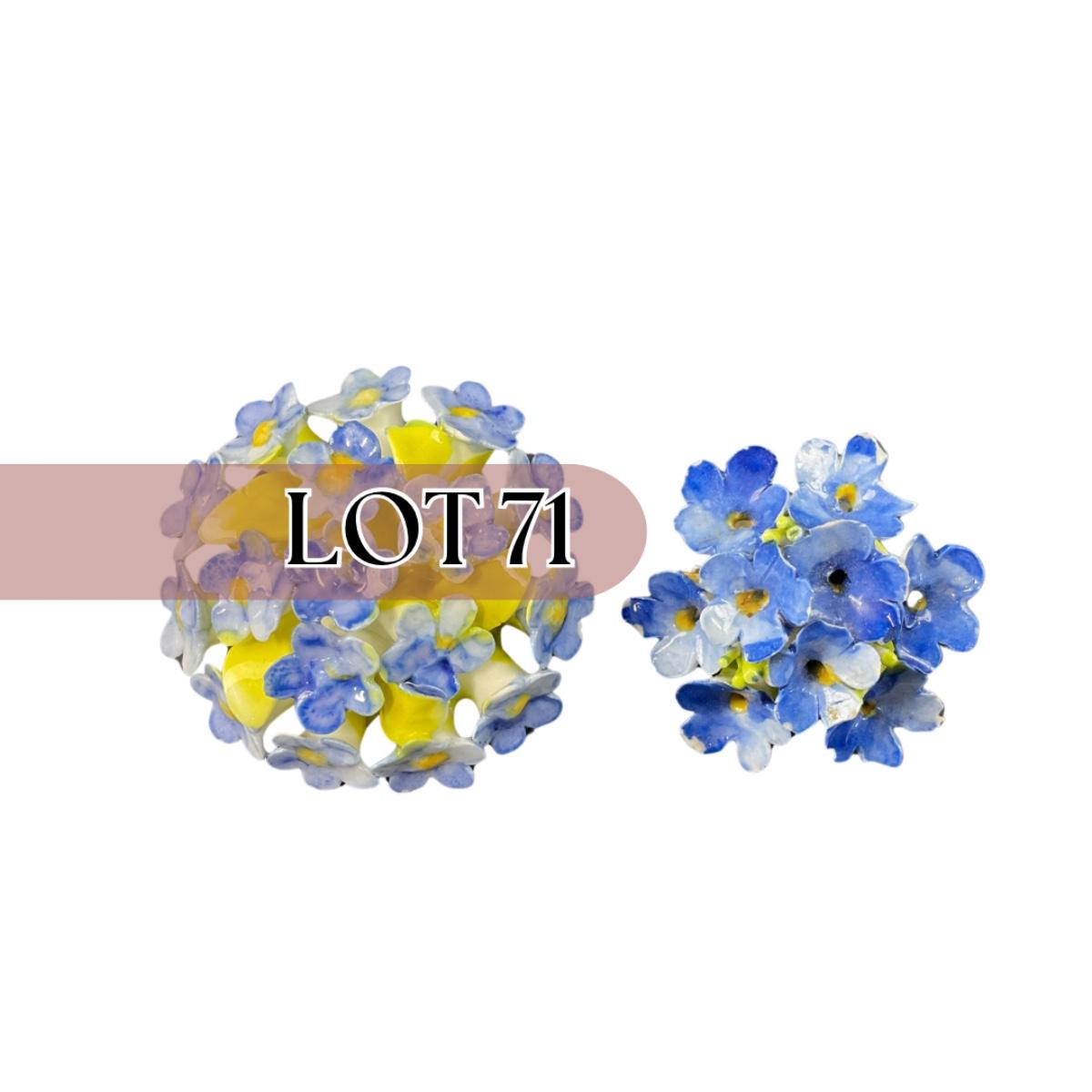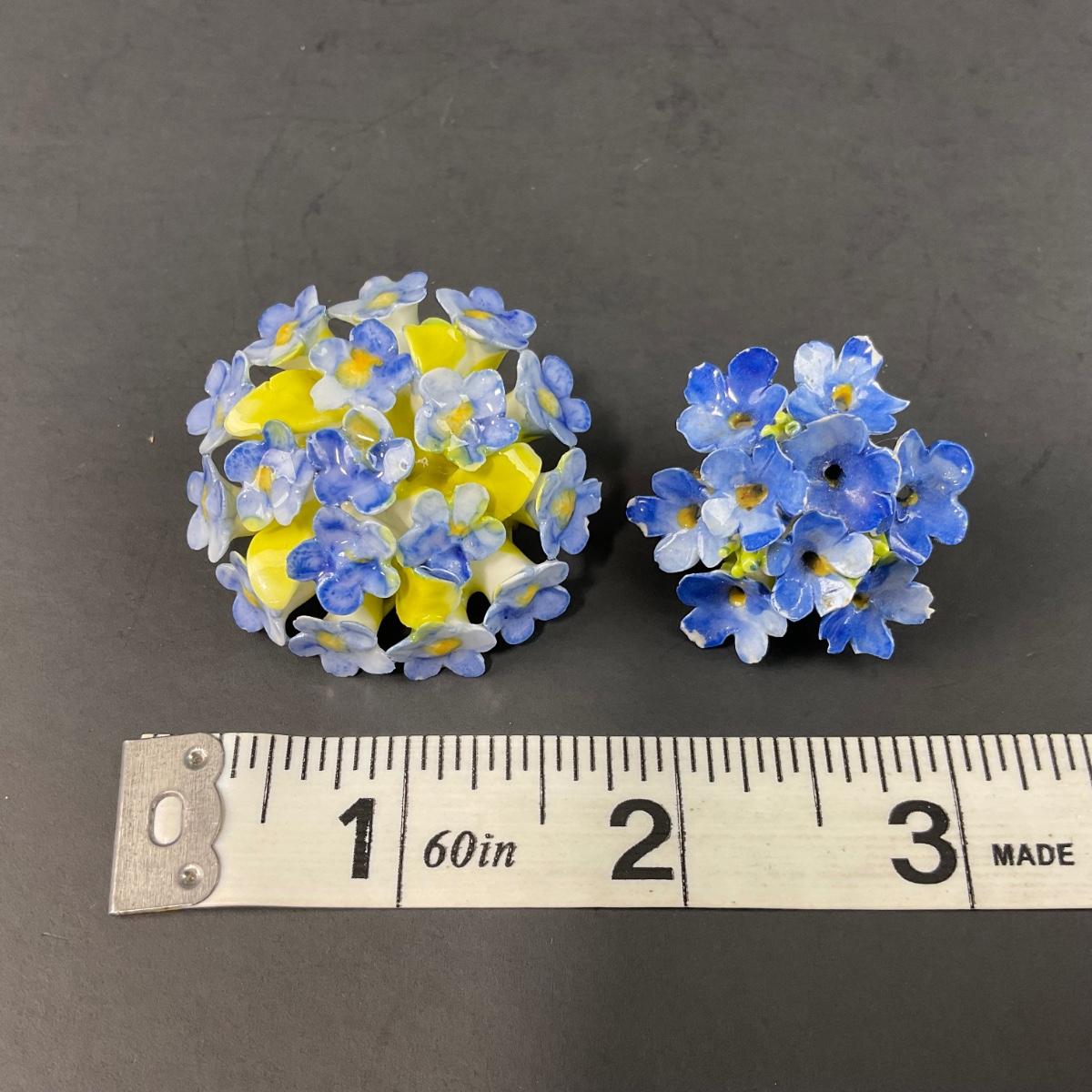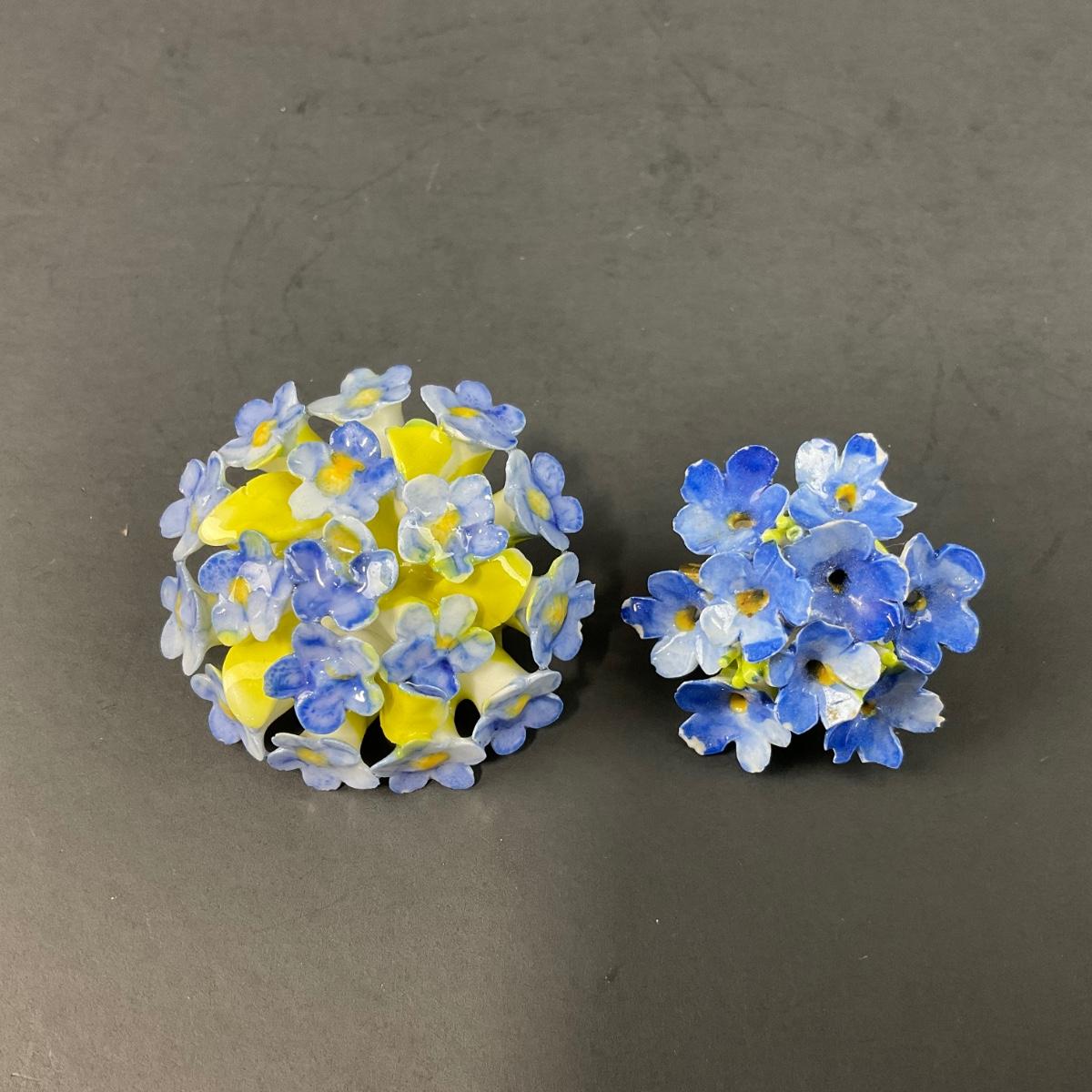 Two vintage bone china forget me not brooches, there are some petals and pieces that have chips. Please see photos for details and condition. Any condition statement is given as a courtesy to a client, is an opinion, and should not be treated as a statement of fact. Reference to condition written, oral or within a condition report shall not be regarded as a full account of condition and may not include all defects, alterations, or restorations. Absence of a condition report does not imply a lot is flawless or lacking imperfections or damage. Katherine’s Auction & Appraisal Service shall have no responsibility for any error or omission. Returns shall not be accepted on the basis of condition. ::: Shipping is available on this lot. If you require shipping you must let us know at the close of the auction. We will coordinate with you after the item has been won. Shipping fees will include insurance up to or exceeding the value of all items being mailed. If you have any questions regarding this lot please contact the auctioneer either via this website, by direct email or by phone. PICK UP TIMES and other important information can be found in the TERMS and DESCRIPTION of the auction. Please take a look for pertinent information. Thanks!