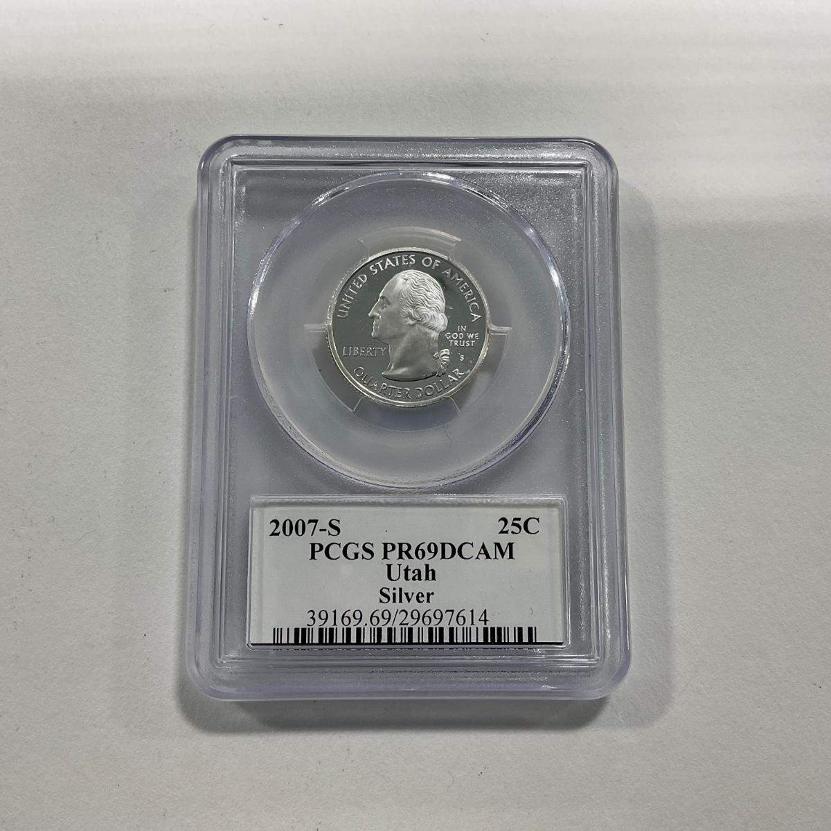 -71- COINS | 2007-S Silver Washington Utah State Quarter Proof PCGS PR69 DCAM