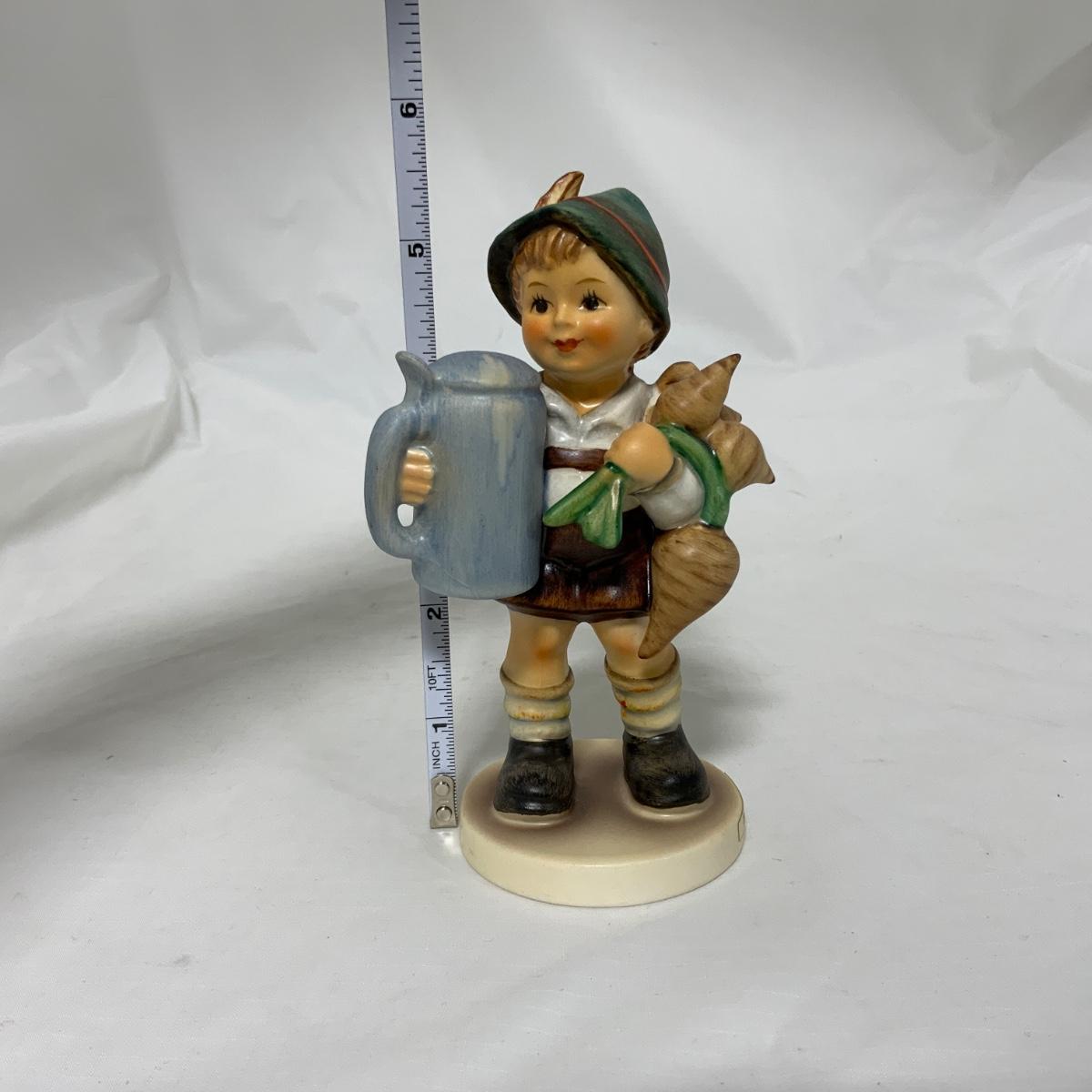 What dad doesn’t love turnips and beer? For Father, Hum 87. TMK-5. Please see photos for details and condition. A glazed chip on the base (from production) and crazing is noted. ::: Shipping is available on this lot. If you require shipping you must let us know at the close of the auction. We will coordinate with you after the item has been won. Shipping fees will include insurance up to or exceeding the value of all items being mailed. If you have any questions regarding this lot please contact the auctioneer either via this website, by direct email or by phone. PICK UP TIMES and other important information can be found in the TERMS and DESCRIPTION of the auction. Please take a look for pertinent information. Thanks!