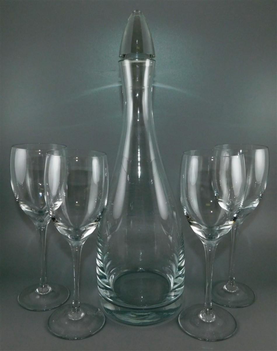 71 Lenox USA Vintage Crystal Decanter Acid Etched & Signed ~ 4 x 13 1/2 w/4 Goblets 2 1/2 x 7 ~ Acid Etched & Signed