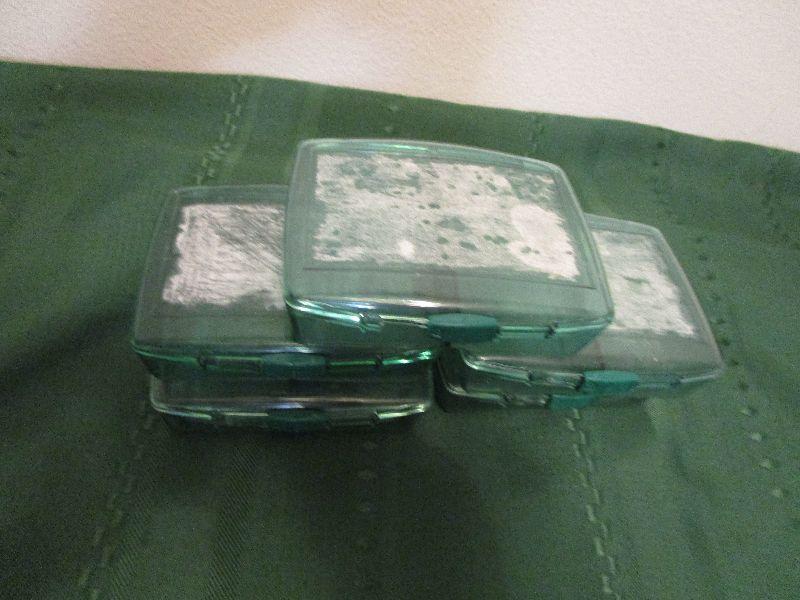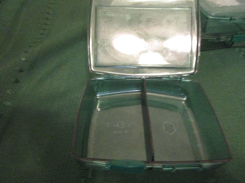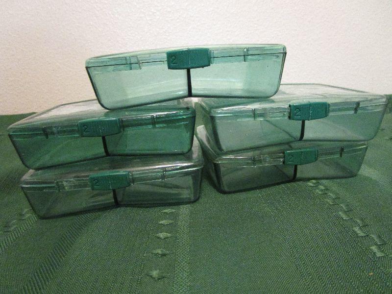5- Green divided containers with latch to close 5"x4"x1.5". Would be great for small sewing kit, first aid kit, craft beads, etc.
