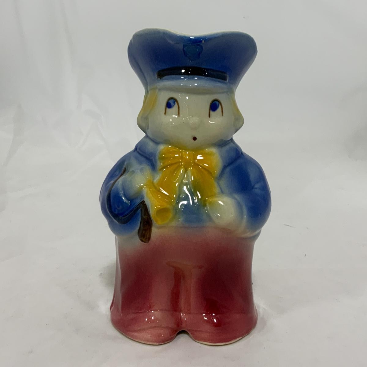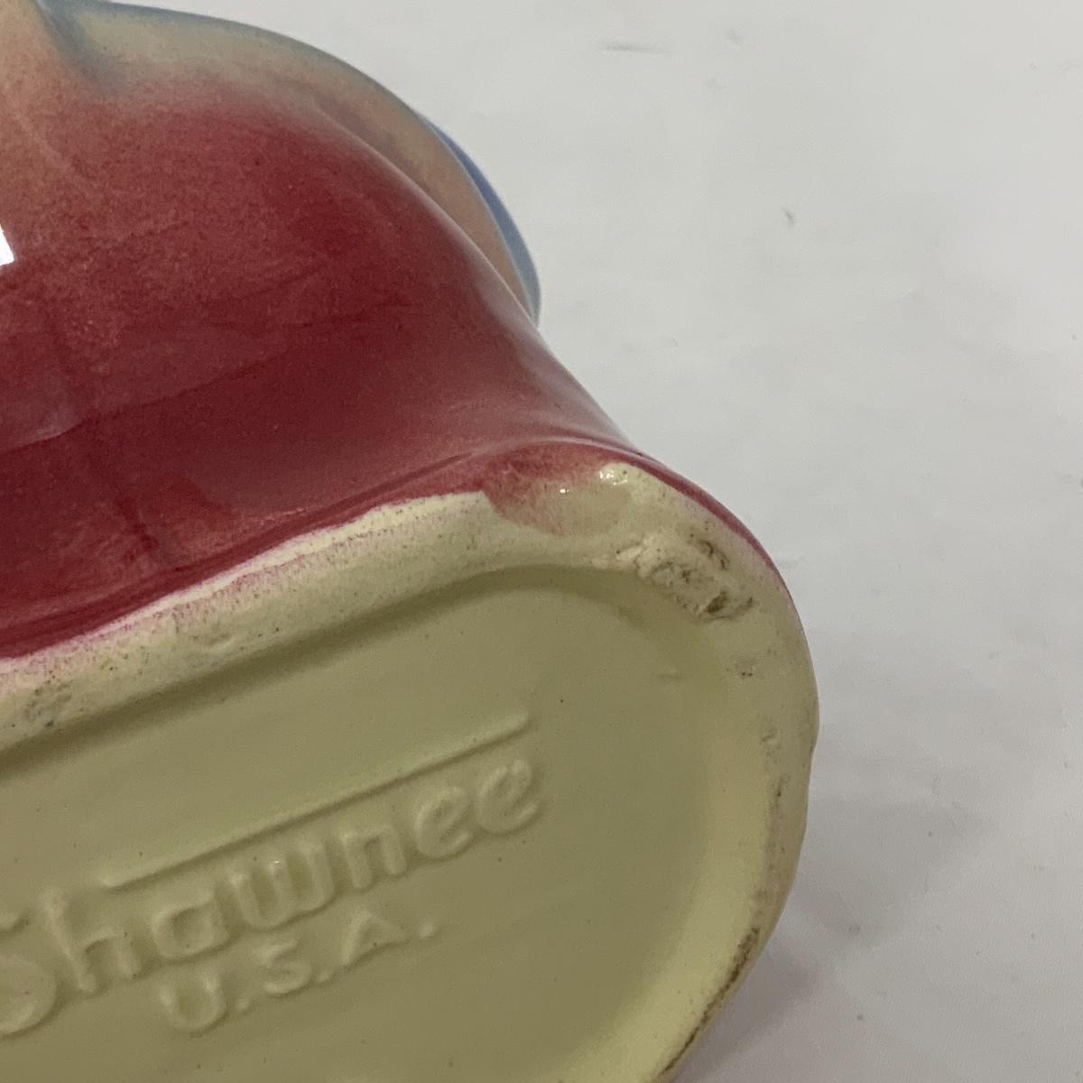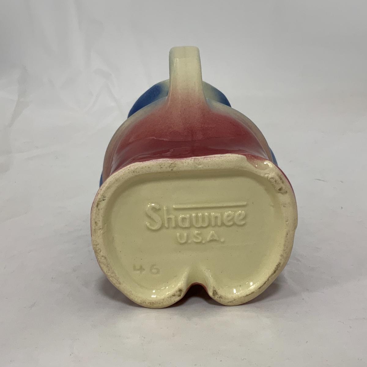 From the Estate of Peter and Alice Radovanovich: Shawnee has done it again! This Little Boy Blue Pitcher was produced in the 1940s, and is absolutely adorable! No cracks or chips noted on the piece, there is a manufacturing flaw on the base, by his left foot - pictured. Please see photos for details and condition. ::: Shipping is available on this lot. If you require shipping you must let us know at the close of the auction. We will coordinate with you after the item has been won. Shipping fees will include insurance up to or exceeding the value of all items being mailed. If you have any questions regarding this lot please contact the auctioneer either via this website, by direct email or by phone. PICK UP TIMES and other important information can be found in the TERMS and DESCRIPTION of the auction. Please take a look for pertinent information. Thanks!