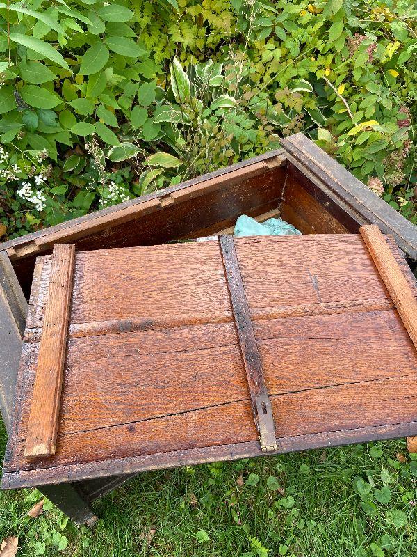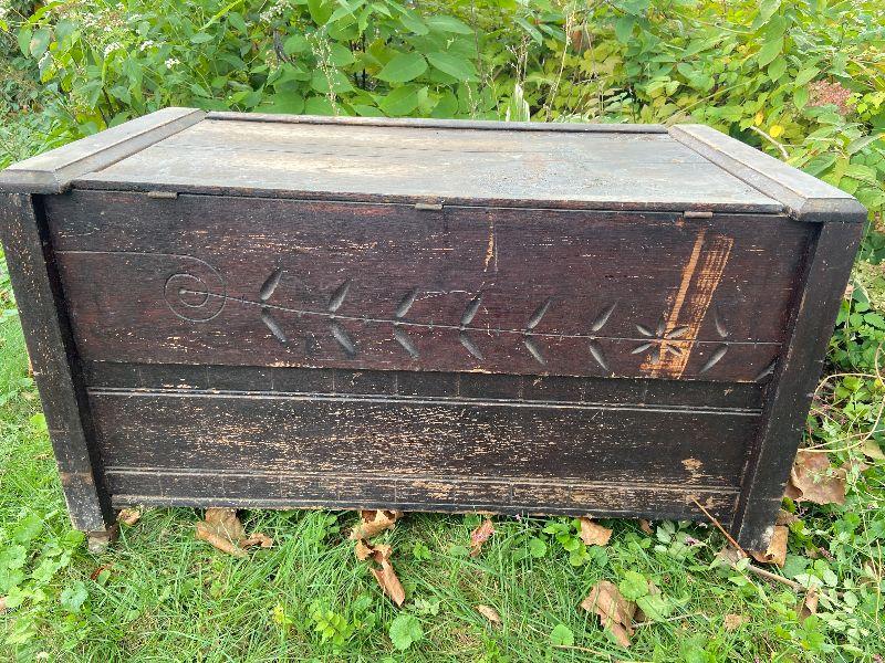 With carved relief. Needs some love *Please review all photos for condition and contents of lot.