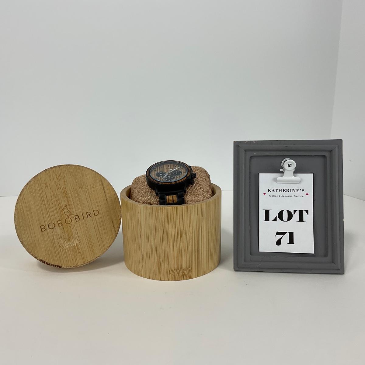 One what appears to be new in box BoBoBird Men’s watch Witch hidden Mickey Mouse head shape. This piece has been tested and is working with full instructions and case. Please see photos for details and condition. Any condition statement is given as a courtesy to a client, is an opinion, and should not be treated as a statement of fact. Reference to condition written, oral or within a condition report shall not be regarded as a full account of condition and may not include all defects, alterations, or restorations. Absence of a condition report does not imply a lot is flawless or lacking imperfections or damage. Katherine’s Auction & Appraisal Service shall have no responsibility for any error or omission. Returns shall not be accepted on the basis of condition. ::: Shipping is available on this lot. If you require shipping you must let us know at the close of the auction. We will coordinate with you after the item has been won. Shipping fees will include insurance up to or exceeding the value of all items being mailed. If you have any questions regarding this lot please contact the auctioneer either via this website, by direct email or by phone. PICK UP TIMES and other important information can be found in the TERMS and DESCRIPTION of the auction. Please take a look for pertinent information. Thanks!